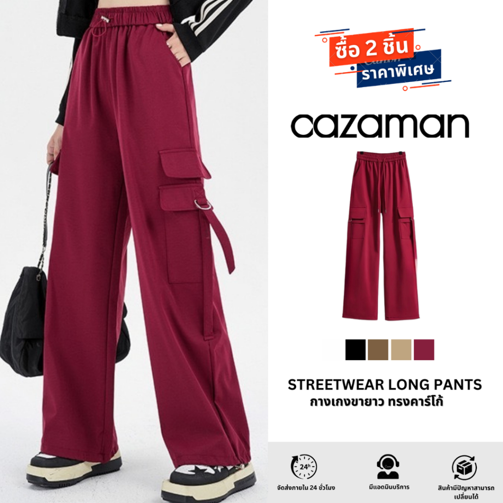CAZAMAN กางเกงขายาว กางเกงทรงคาร์โก้ ขากว้าง กางเกงทรงตรง ทรงหลวม 285