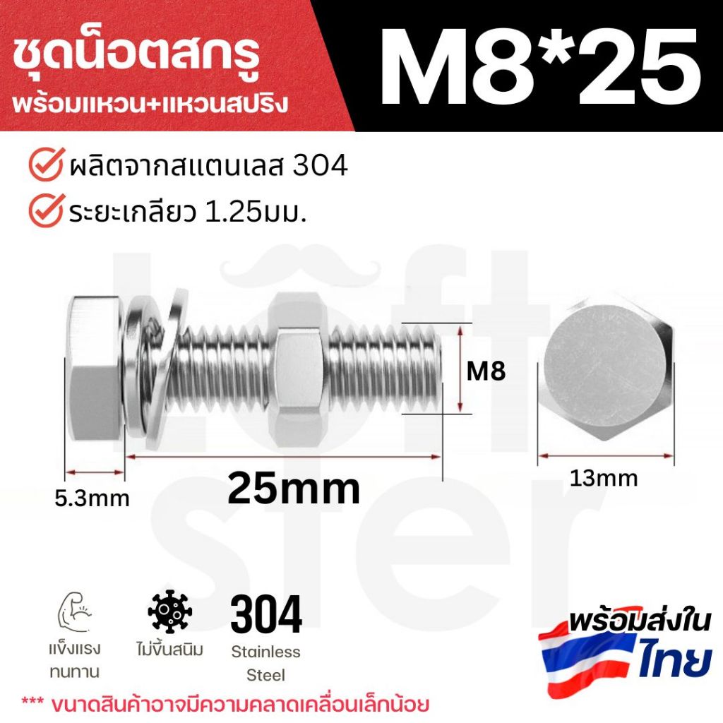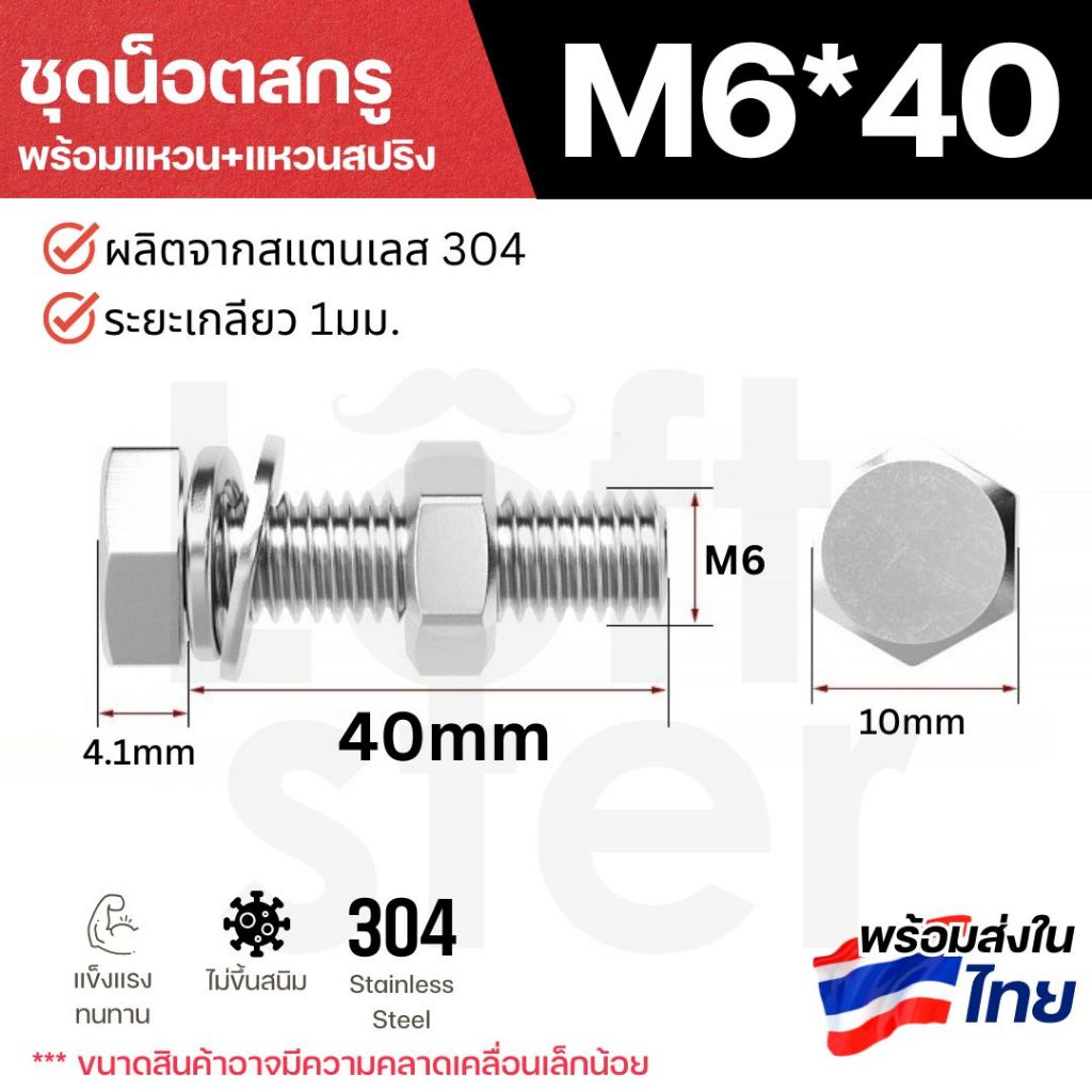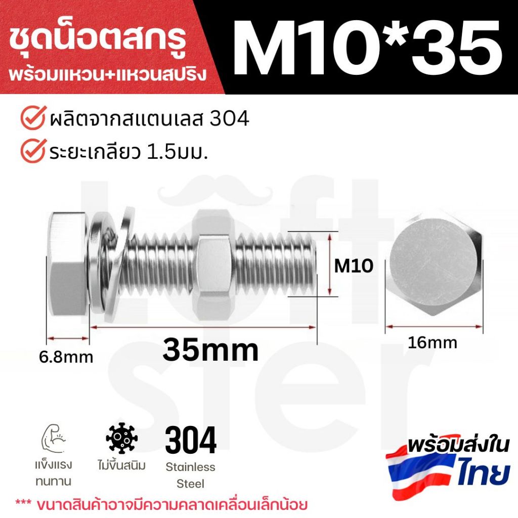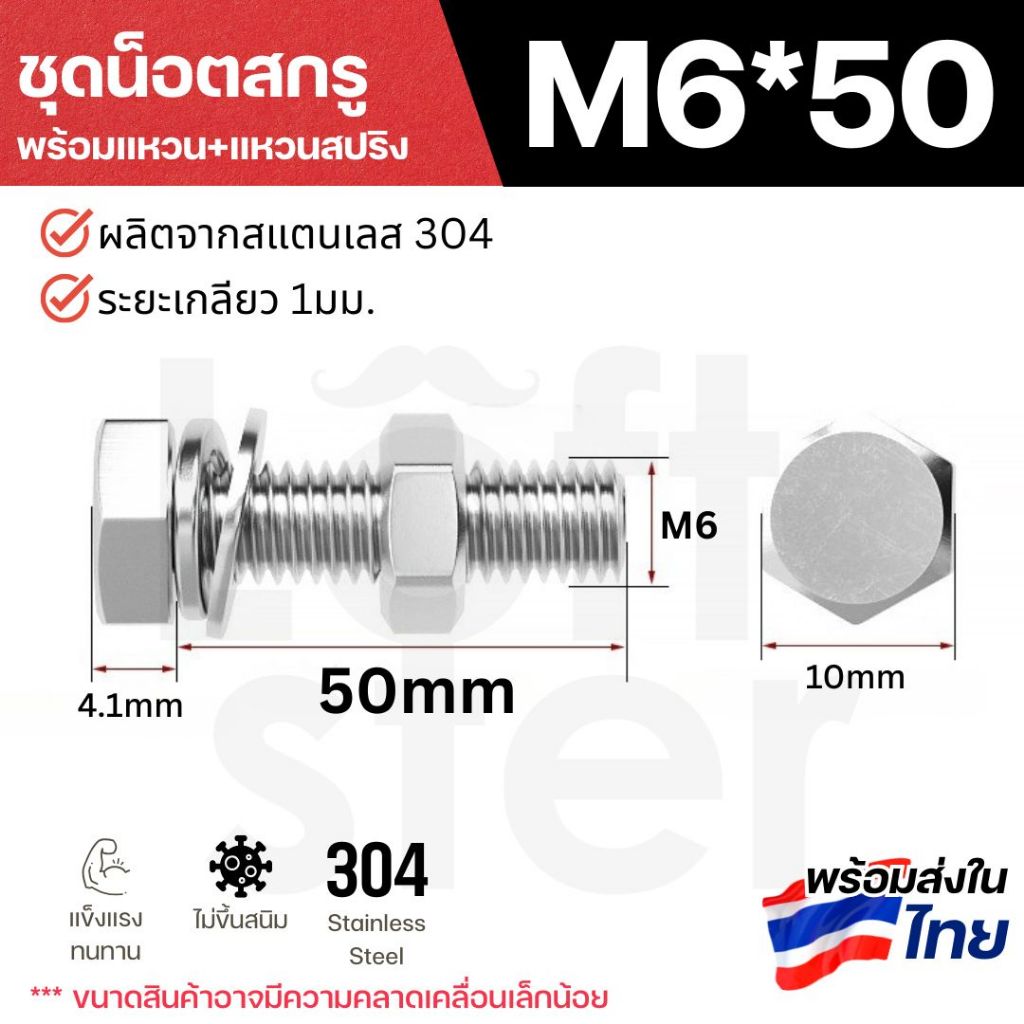 ชุดน็อตหัวหกเหลี่ยม SUS304 พร้อมแหวน+แหวนสปริง M6 M8 M10 M12 | แข็งแรง ทนสนิม ใช้งานภายนอกได้