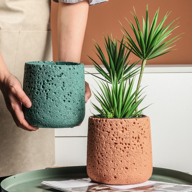 กระถางต้นไม้ ปูนซีเมนต์ สีสันสดใสลายพื้นผิวดาวอังคาร มีให้เลือกหลากสี หลายขนาด S-M