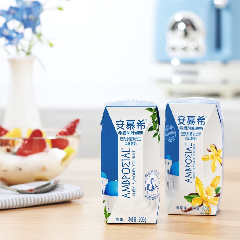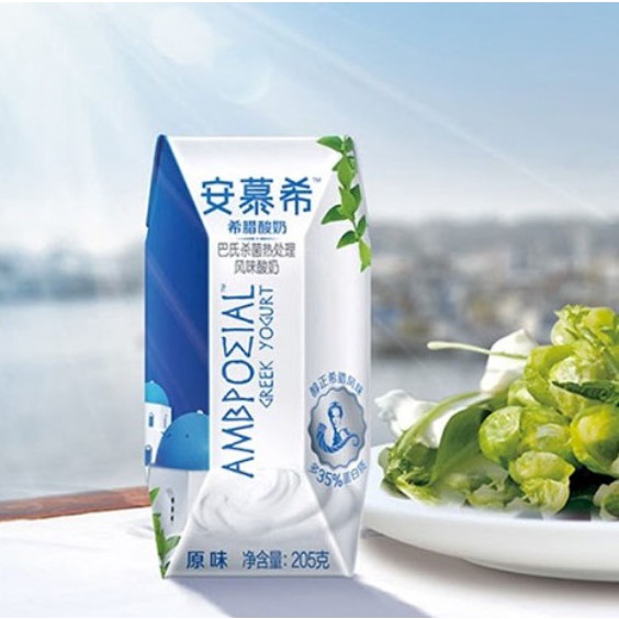 โยเกิร์ตอี้ป๋อ กรีกโยเกิร์ตพร้อมดื่มเข้มข้นหอมมัน มีโปรตีนสูง Greek Yogurt AMBROSIAL 伊利安慕希