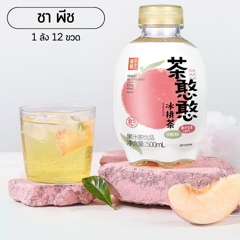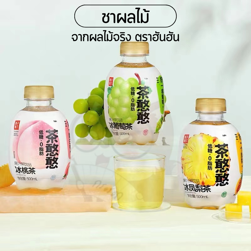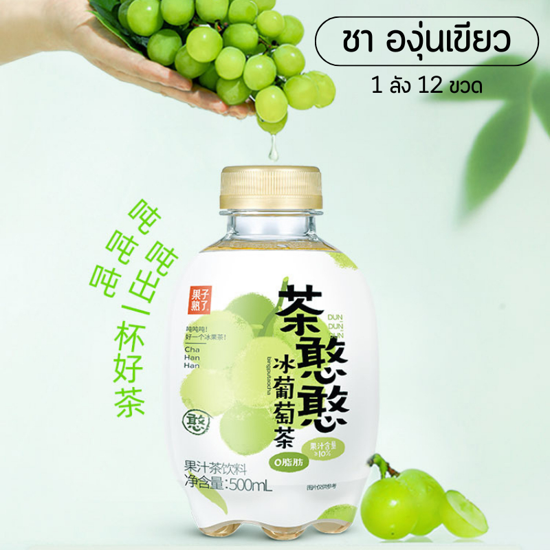 (ยกลังX12) ชาผลไม้ พีช องุ่น ชาฮันฮัน จากน้ำผลไม้จริง หอมอร่อยแพคเกจน่ารัก 茶憨憨 冰葡萄茶 500ml
