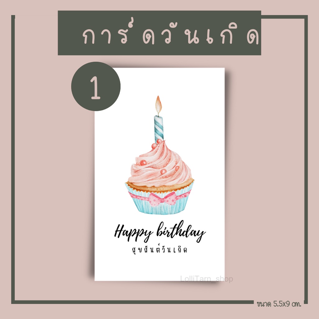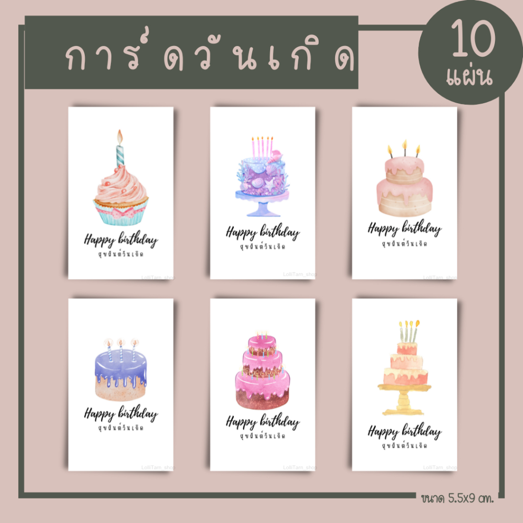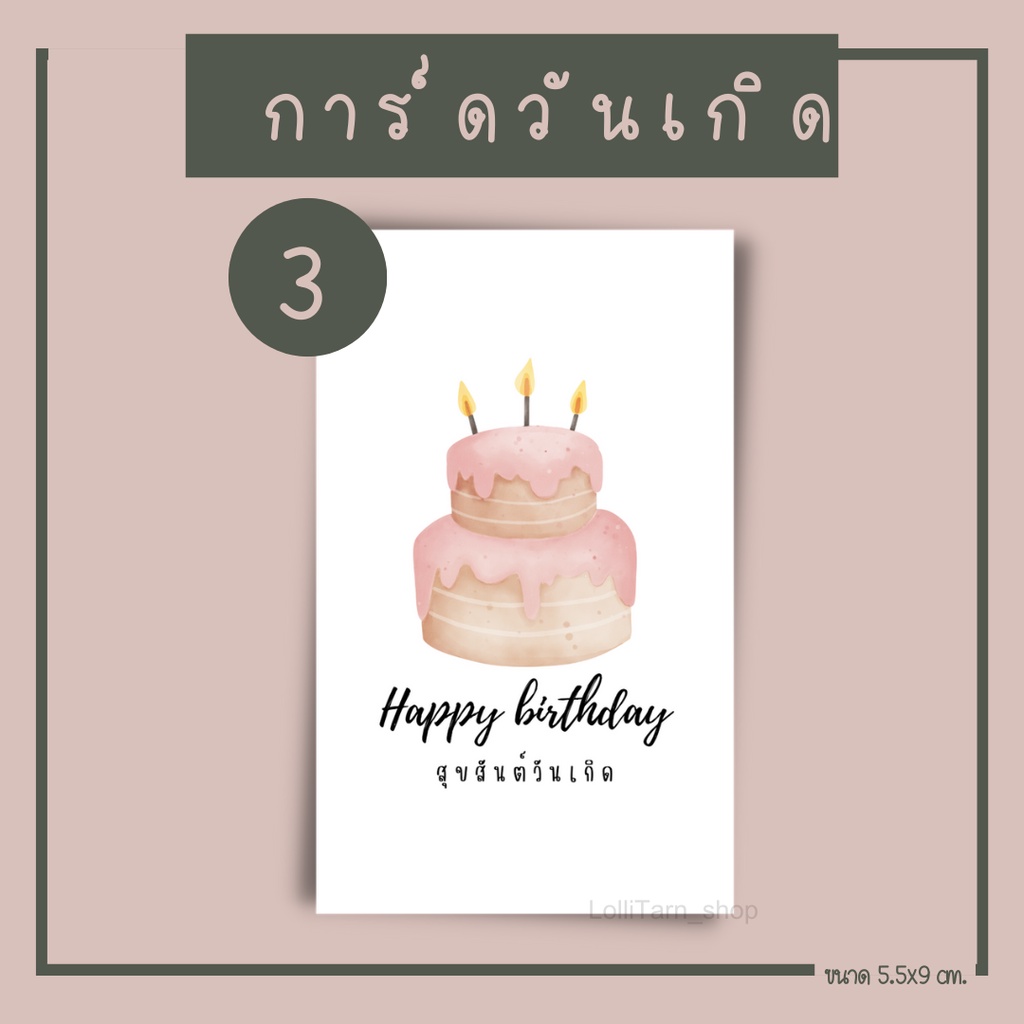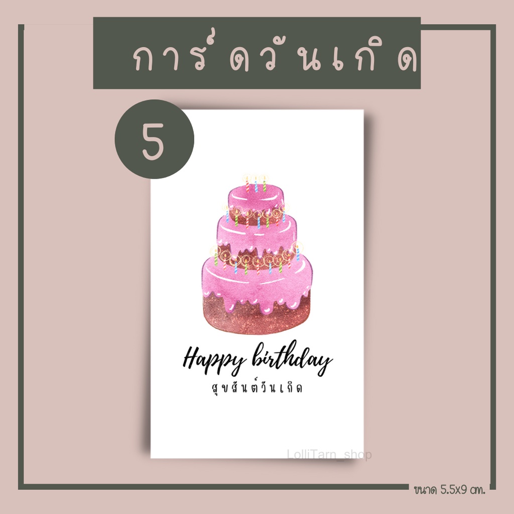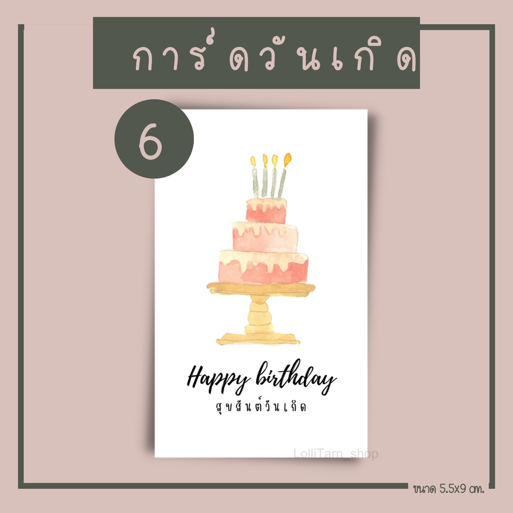 [12บาท/10แผ่น การ์ดวันเกิด พื้นสีขาว ขนาด5.5x9 cm.