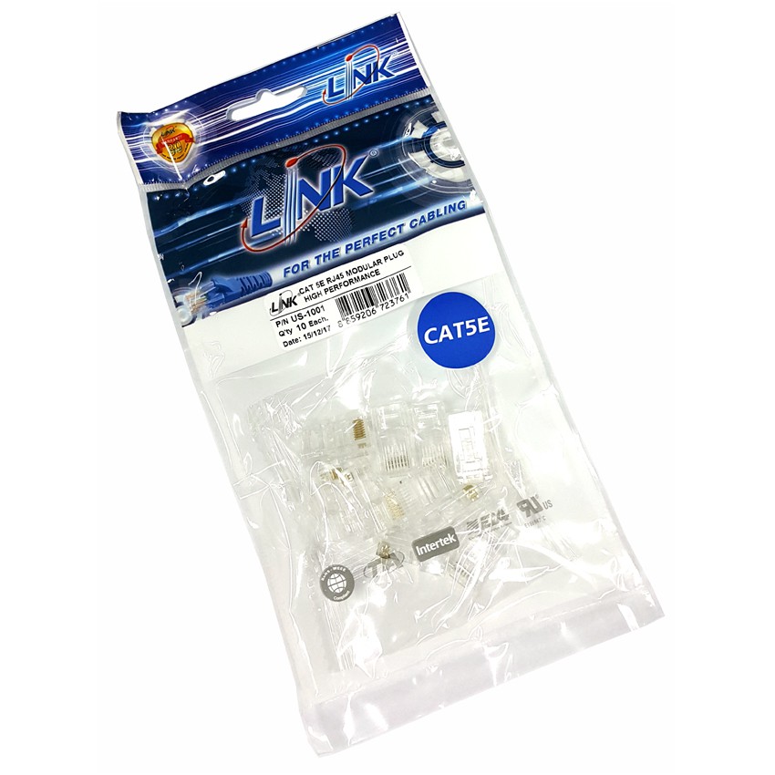 หัวแลนตัวผู้ LINK RJ45 CAT5E รุ่น US-1001 (ถุง 10 ตัว)