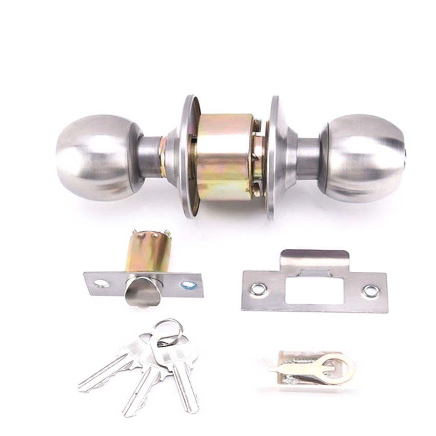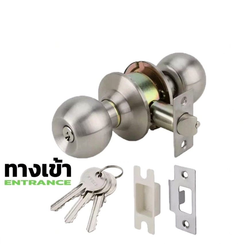 ลูกบิดประตู ลูกบิดสแตนเลส จานสแตนเลสแท้ แกนทองเหลืองแท้ ห้องนอนมีกุญแจให้3 ดอก