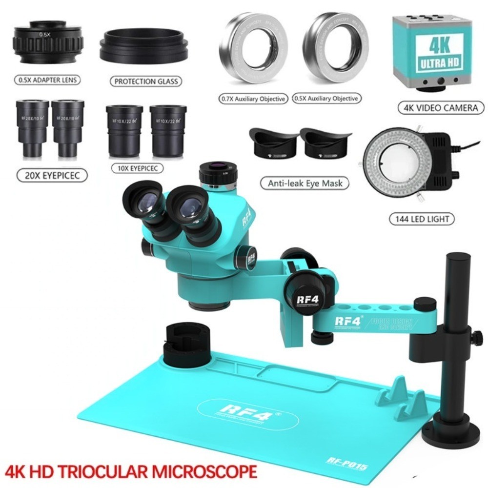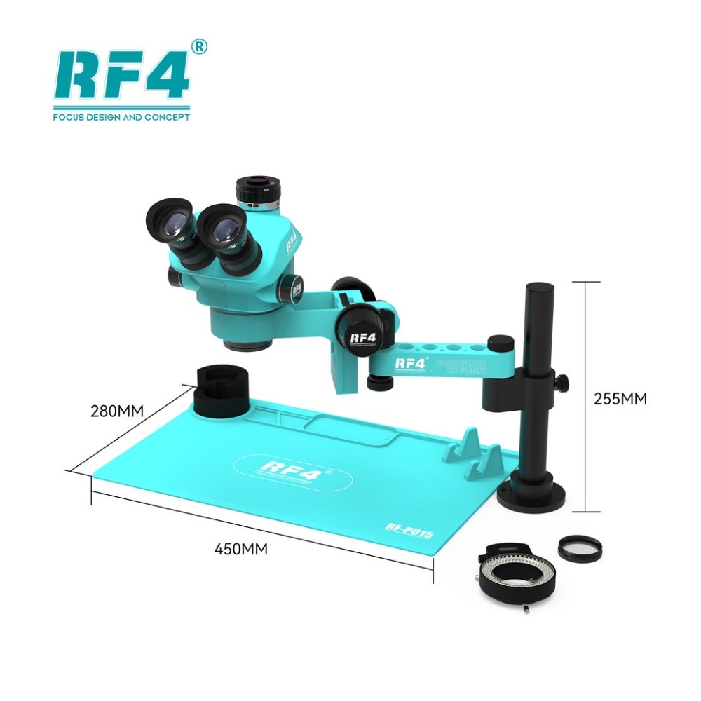 ชุดกล้องจุลทรรศน์สเตอริโอ Trinocular RF4 360 ° Rotation Articulated Arm Stands การบัดกรีโทรศัพท์ PCB ซ่อม RF7050TVPRO-F019