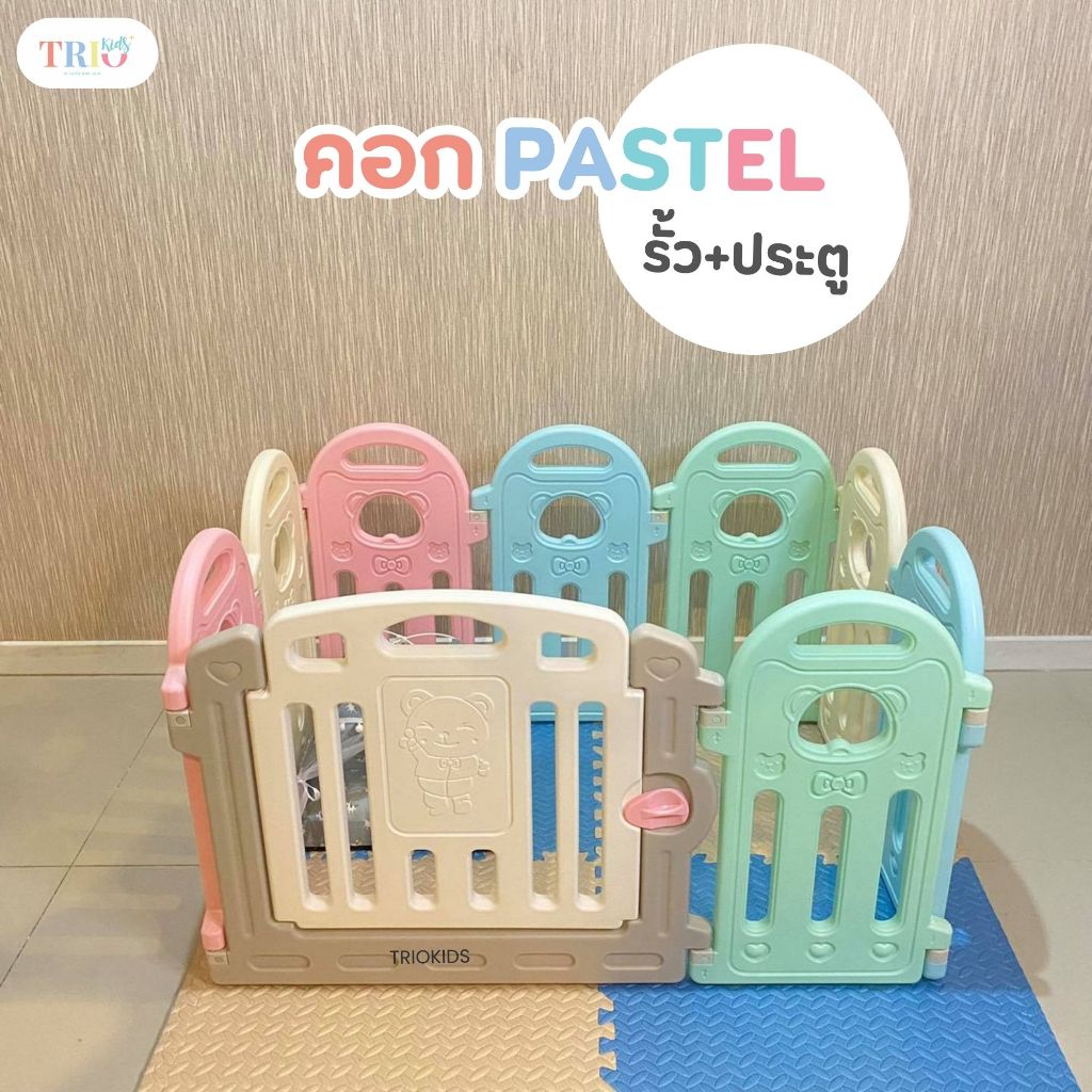 คอกรั้ว+ประตู คอกกั้นหมีพาสเทล ปรับทรงต่างๆได้ เพิ่มลดขนาดได้ตามต้องการ คอกกั้นเด็ก