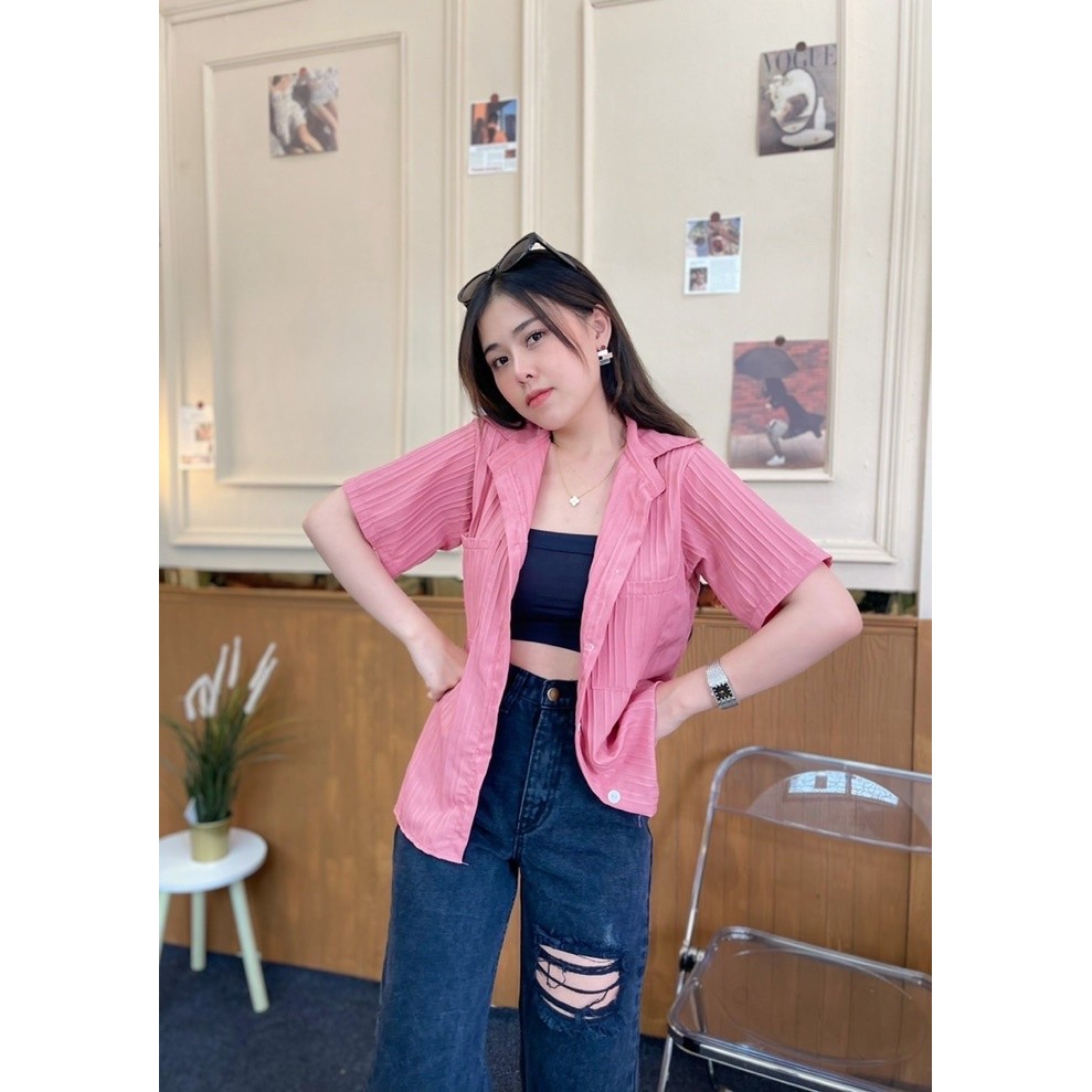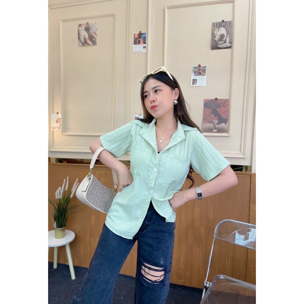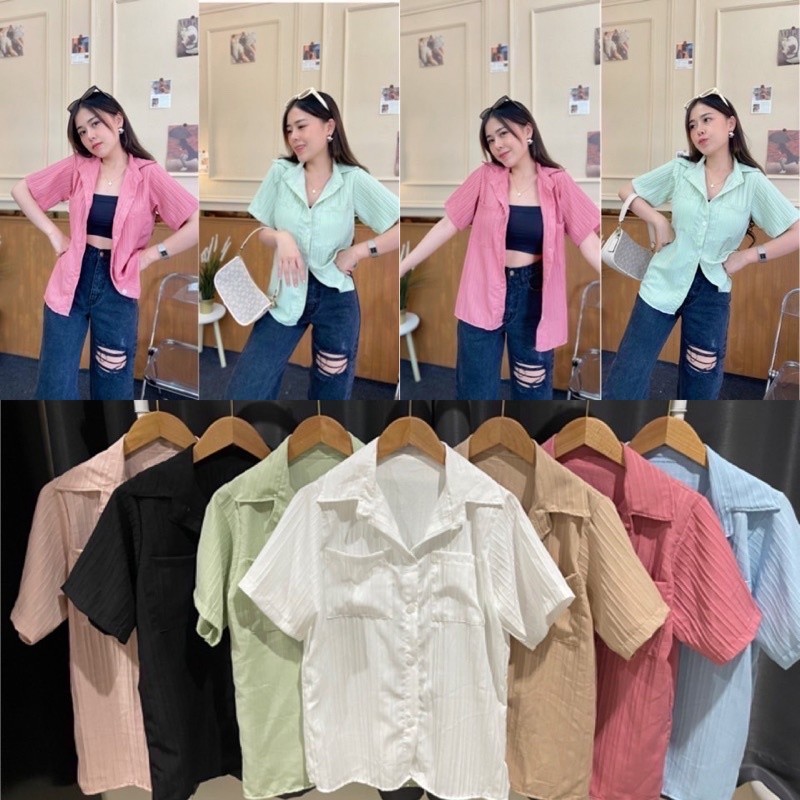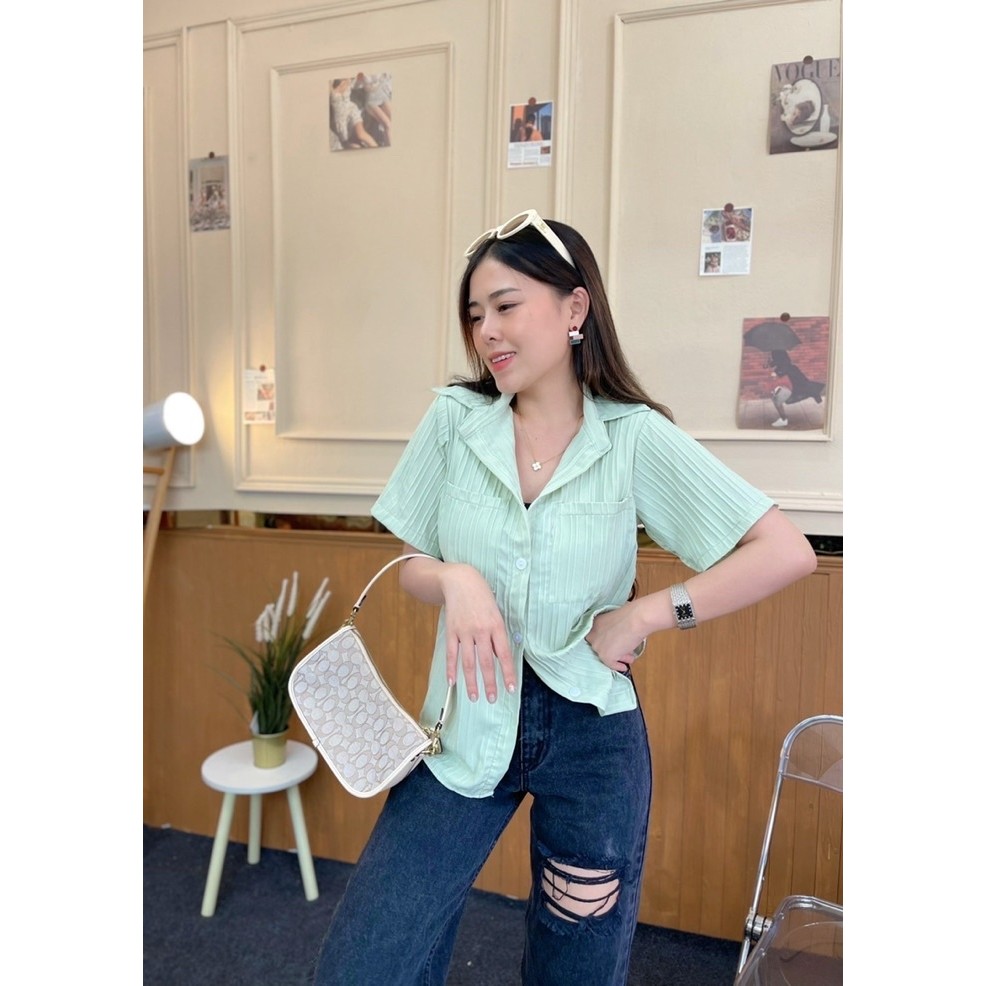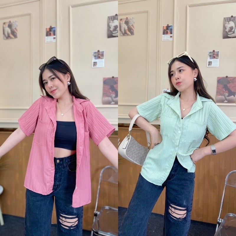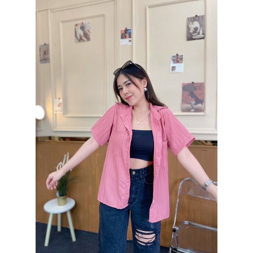 เสื้อเชิ้ตแขนสั้น กระเป๋าหน้า ใส่เป็นเชิ้ตก็ดีใส่เป็นเสื้อคลุมก๋เก๋ค่า