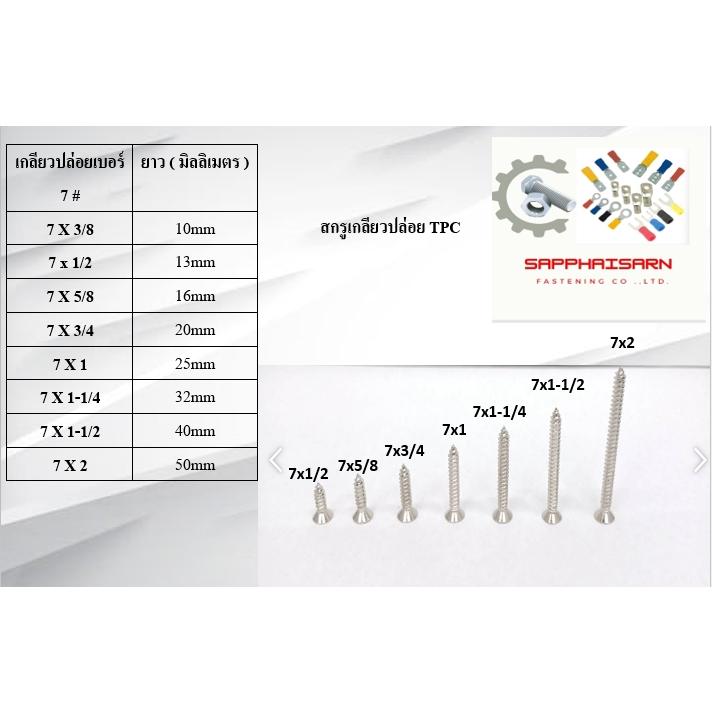 ❗มีส่งด่วน❗(ยกกล่อง) สกรูเกลียวปล่อย เบอร์ 7 หัวเตเปอร์/หัวF/หัวแบนแฉก ตรา TPC / ตรา Star