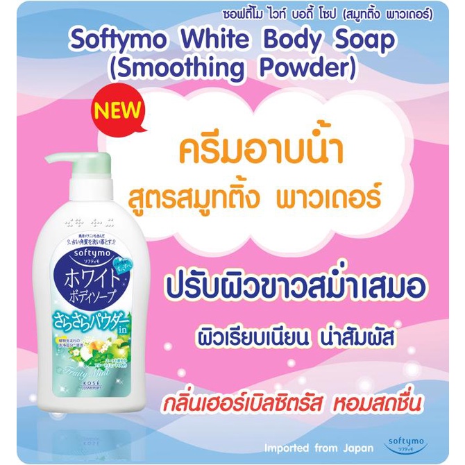 SOFTYMO WHITE BODY SOAP (SMOOTHING POWDER) REFILL 420 ML / ครีมอาบน้ำสูตรสมูทติ้ง