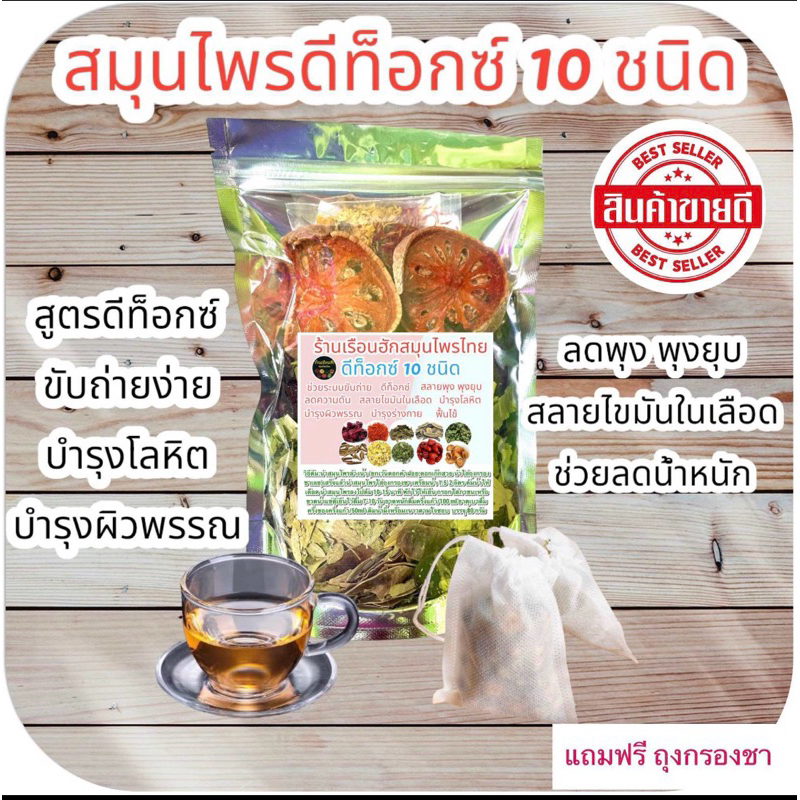 สมุนไพรต้มดีท็อกซ์ 10 ชนิด ร้านเรือนฮัก บรรจุ 80 กรัม มีถุงกรองชาทุกห่อ