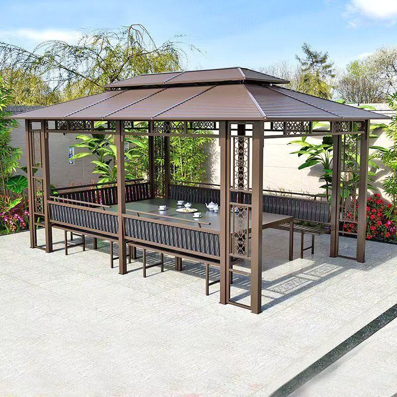 เต็นท์กันแดดกลางแจ้งแบบชุบสังกะสี สำหรับสวนบ้าน เพิงพักผ่อนในสวนวิลล่า กัน UV ทนทาน