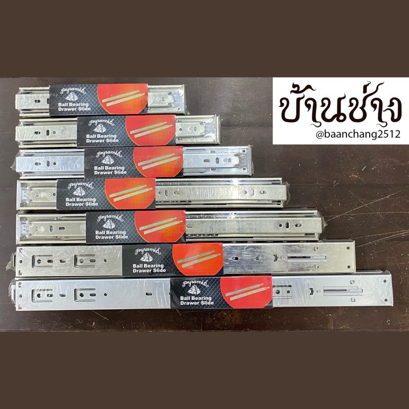 Pyramid ปิรามิด รางลิ้นชัก รุ่นหนา แบบลูกปืน 2ตอน รับข้าง PushOpen เปิดแบบกดกระเด้ง ขนาด10-22 นิ้ว(1 ชุดมี2ชิ้นซ้าย-ขวา)