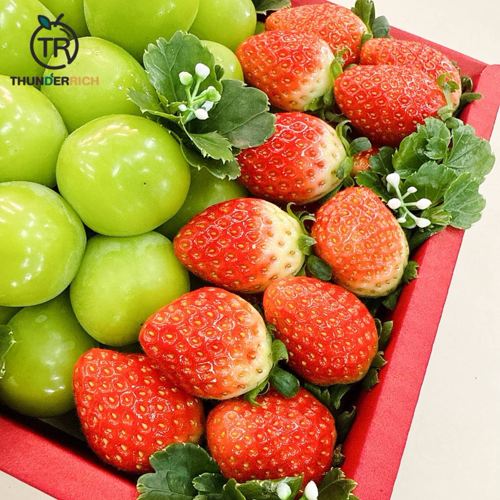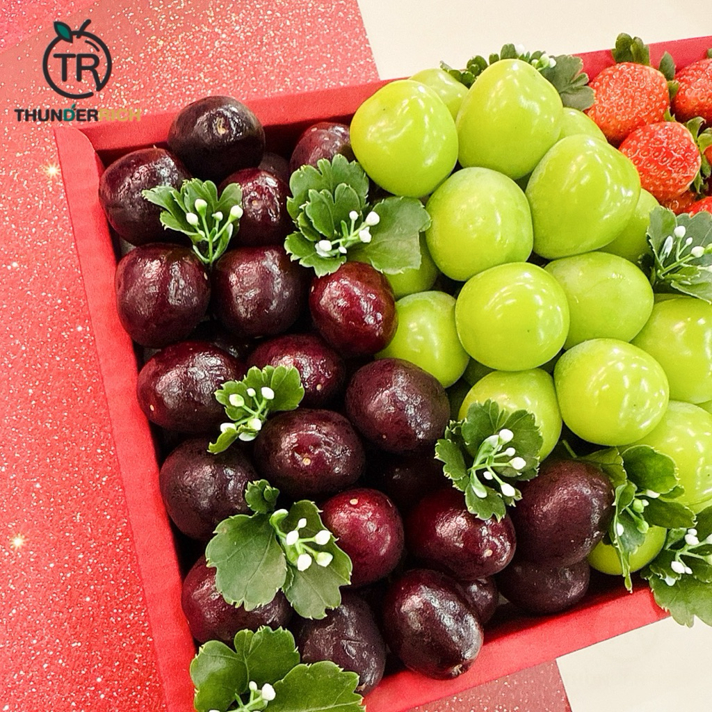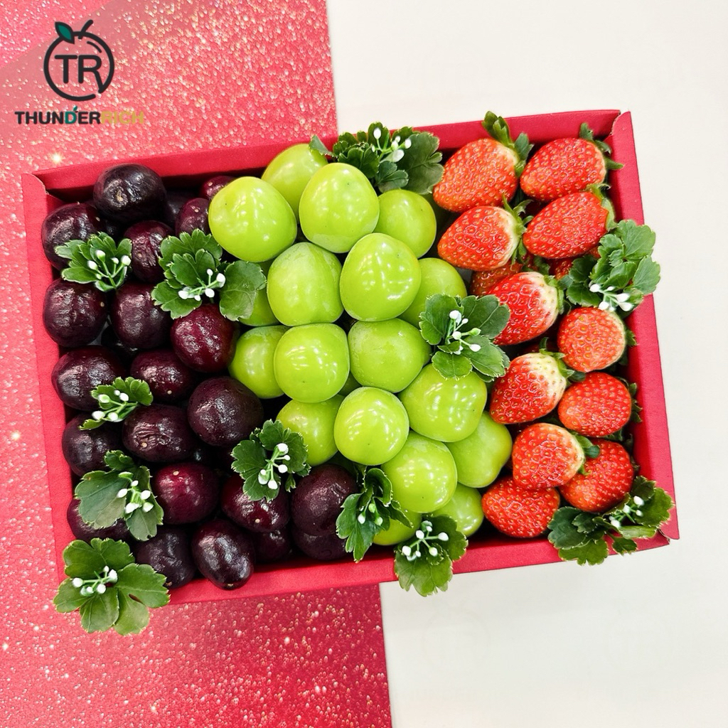 ส่งฟรี‼️ Gift Box 🎁 เซ็ตผลไม้ทรีโอกล่องแดง 🍒🍇🍓