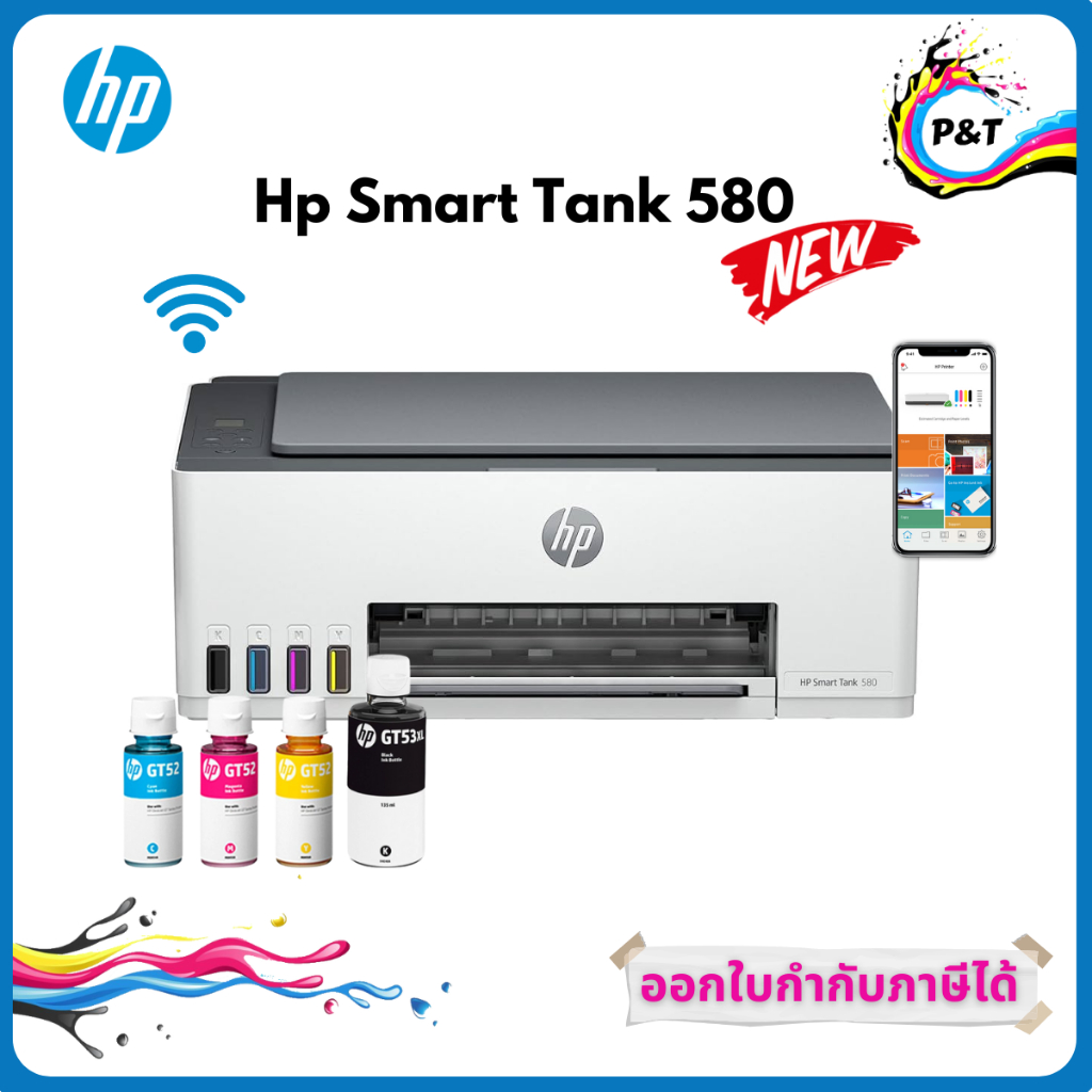 HP Smart Tank 580 (Print/ Copy/ Scan/ Wifi) ฟรีหมึกแท้ 1 ชุดในกล่อง พร้อมประกันศูนย์ HP 2 ปี