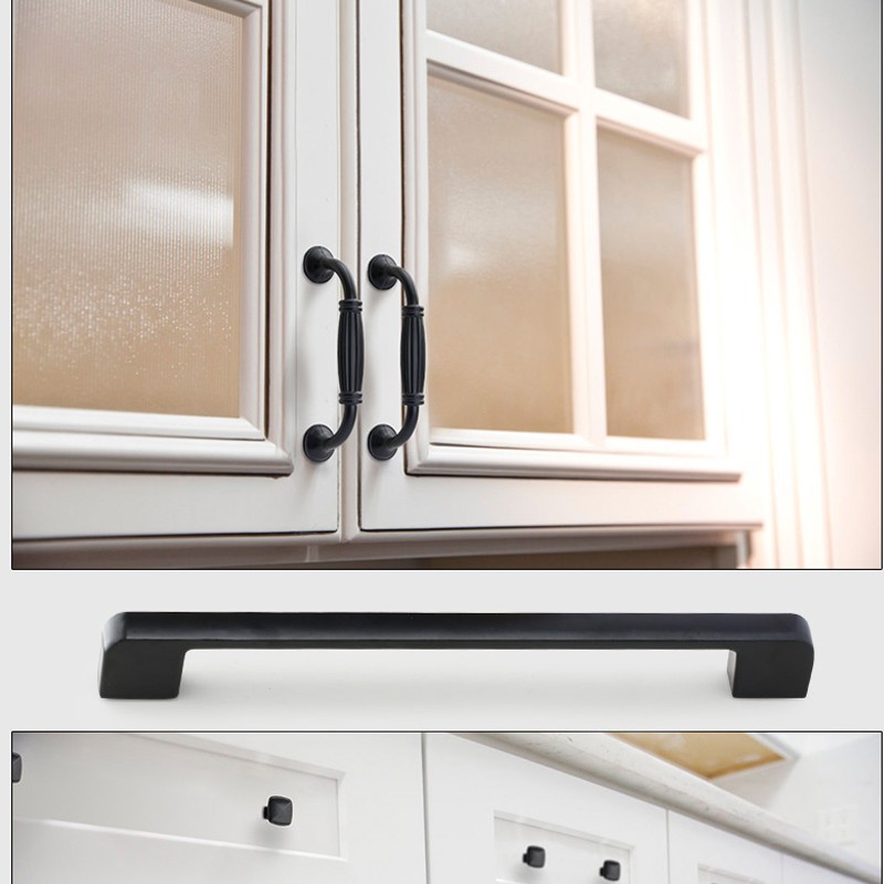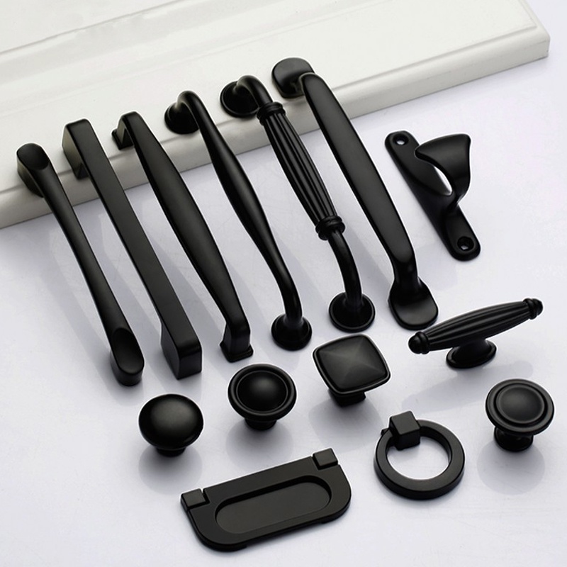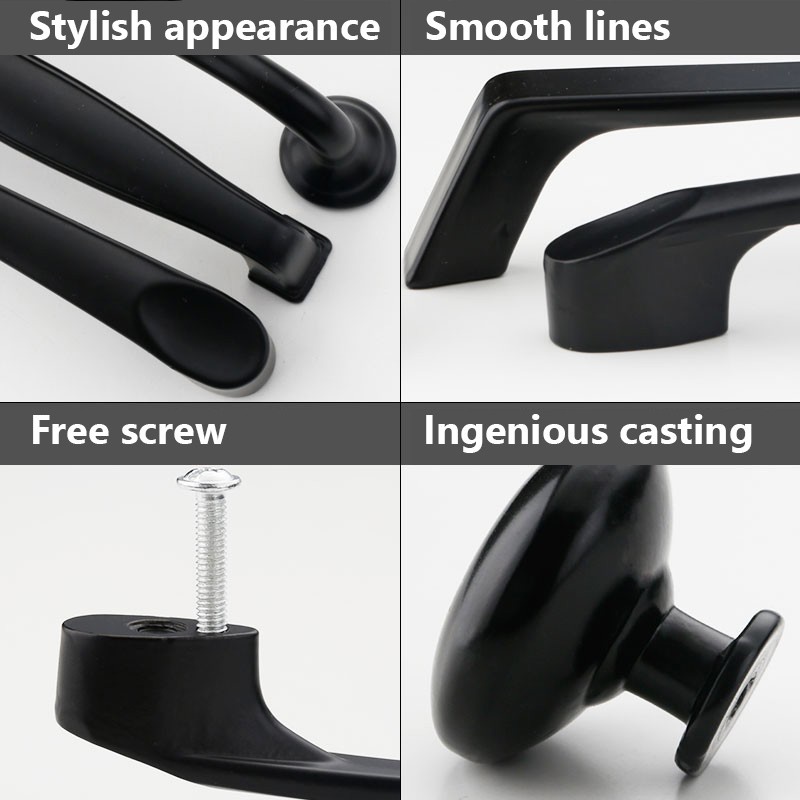 มือจับลูกบิด สีดํา สําหรับเฟอร์นิเจอร์ ตู้กับข้าว ลิ้นชัก ตู้กับข้าว