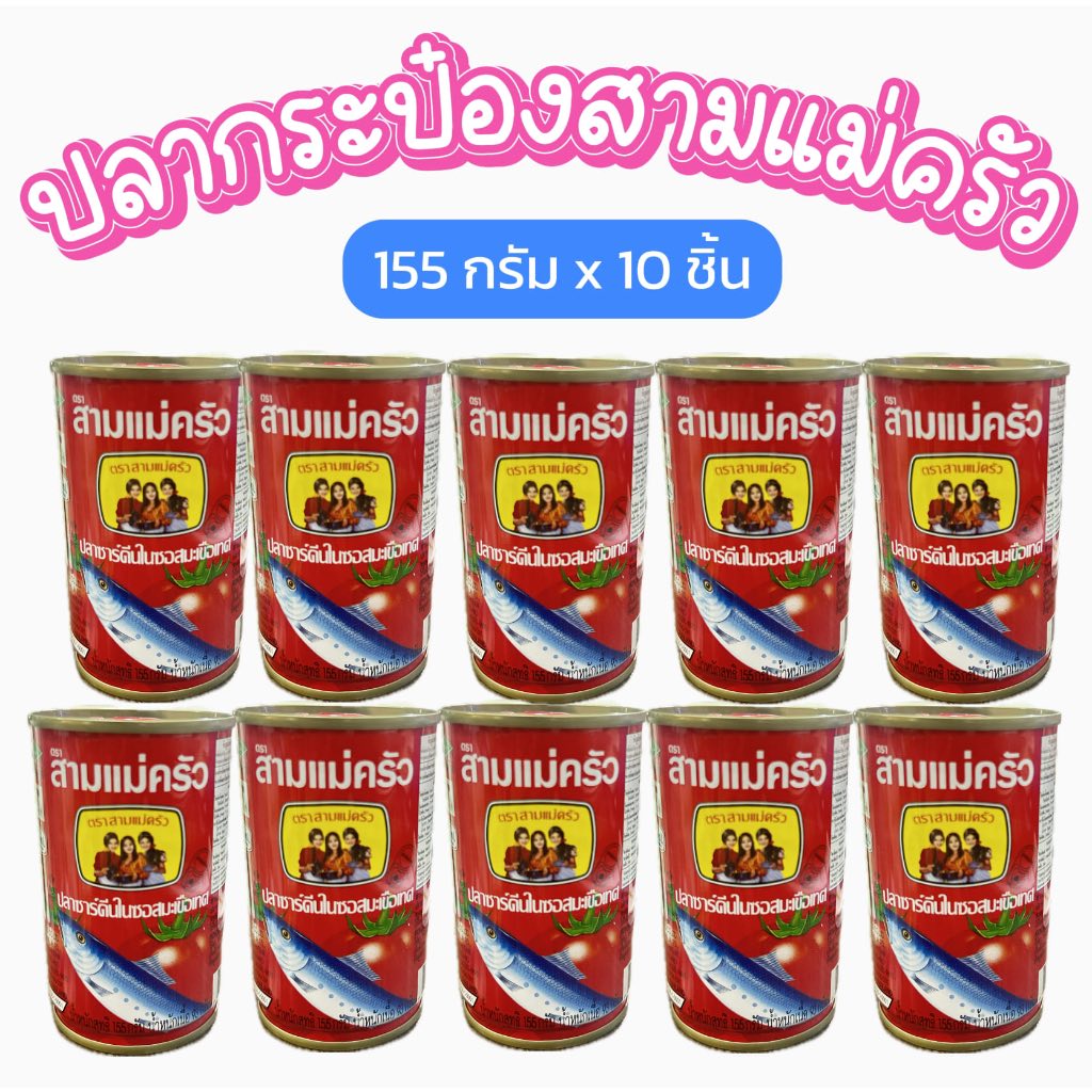 สามแม่ครัว (5กระป๋อง 10 กระป๋อง) ปลาแมคเคอเรลในซอส ขนาด 155 ก. โรซ่าปลาแมคเคอเรลในซอสมะเขือเทศ