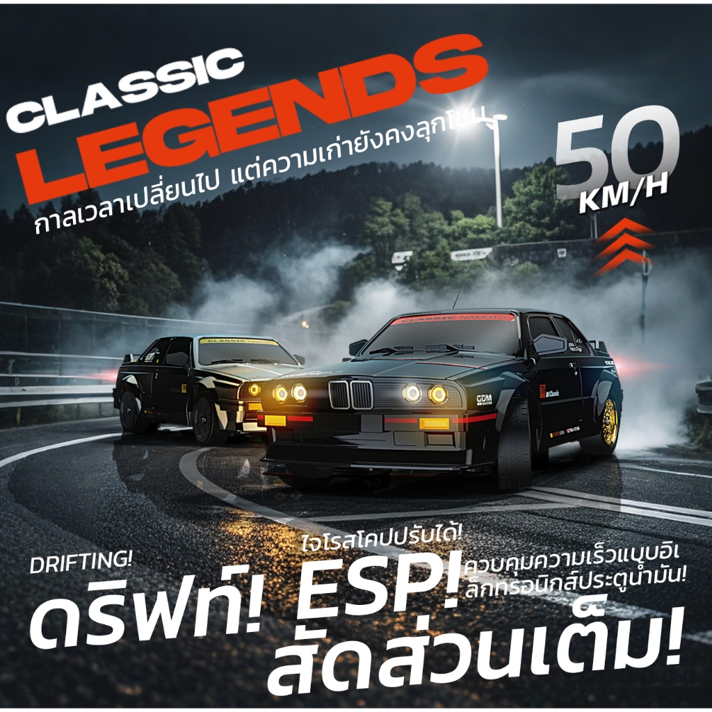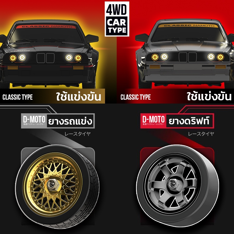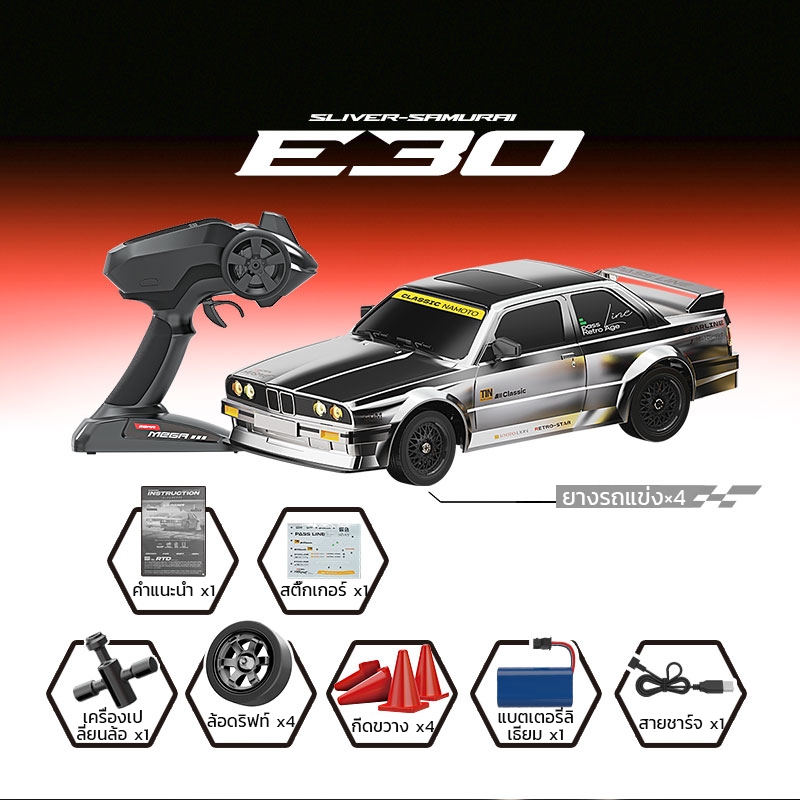 รถดริฟต์ E30 1:16 รถบังคับ 4WDเร่งความเร็วสูงสุด 50km/h สำหรับแข่งดริฟต์โดยเฉพาะ RC Drift Racing