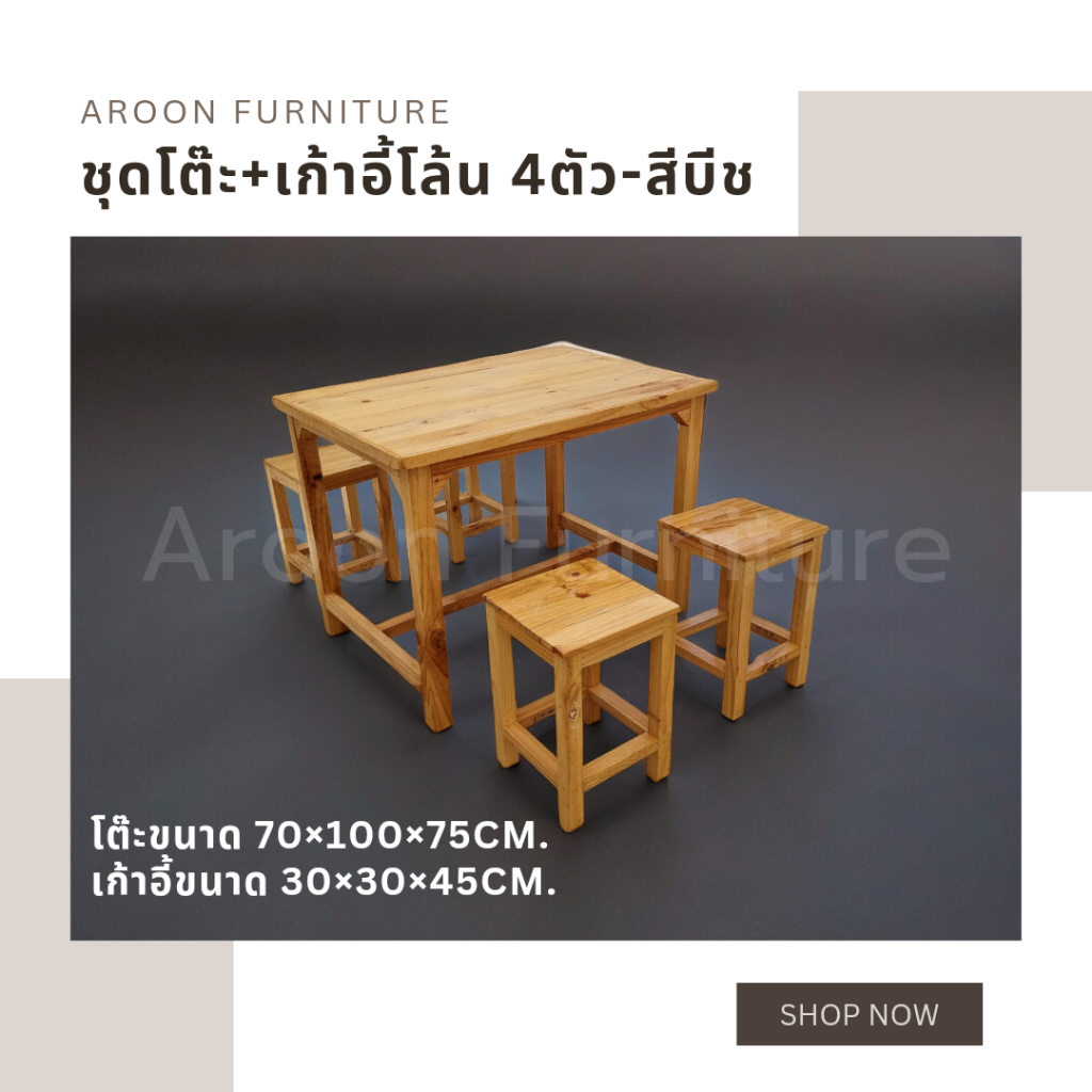 ชุดโต๊ะเก้าอี้ไม้ ไม้สน ไม้จริง 70*100*75 ไม่บวม ทนแดดทนฝน แข็งแรง