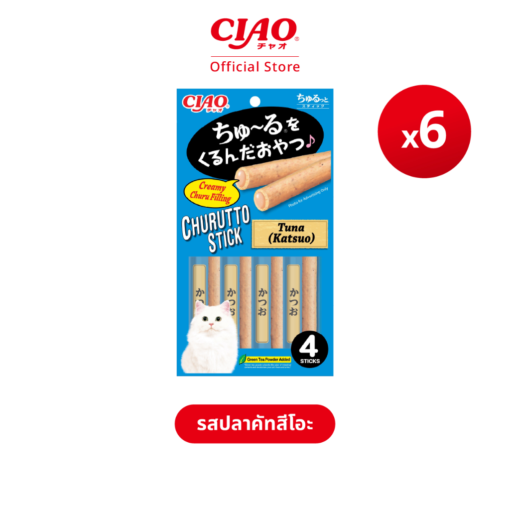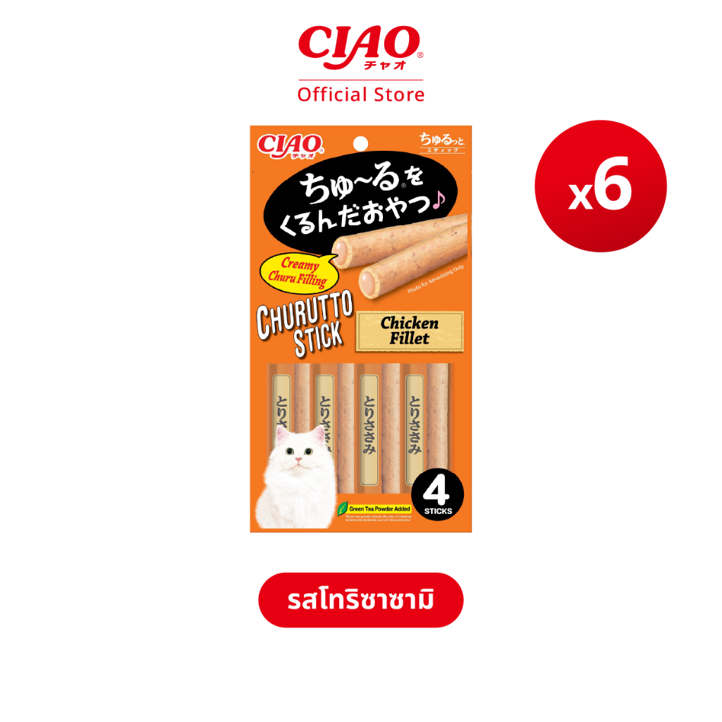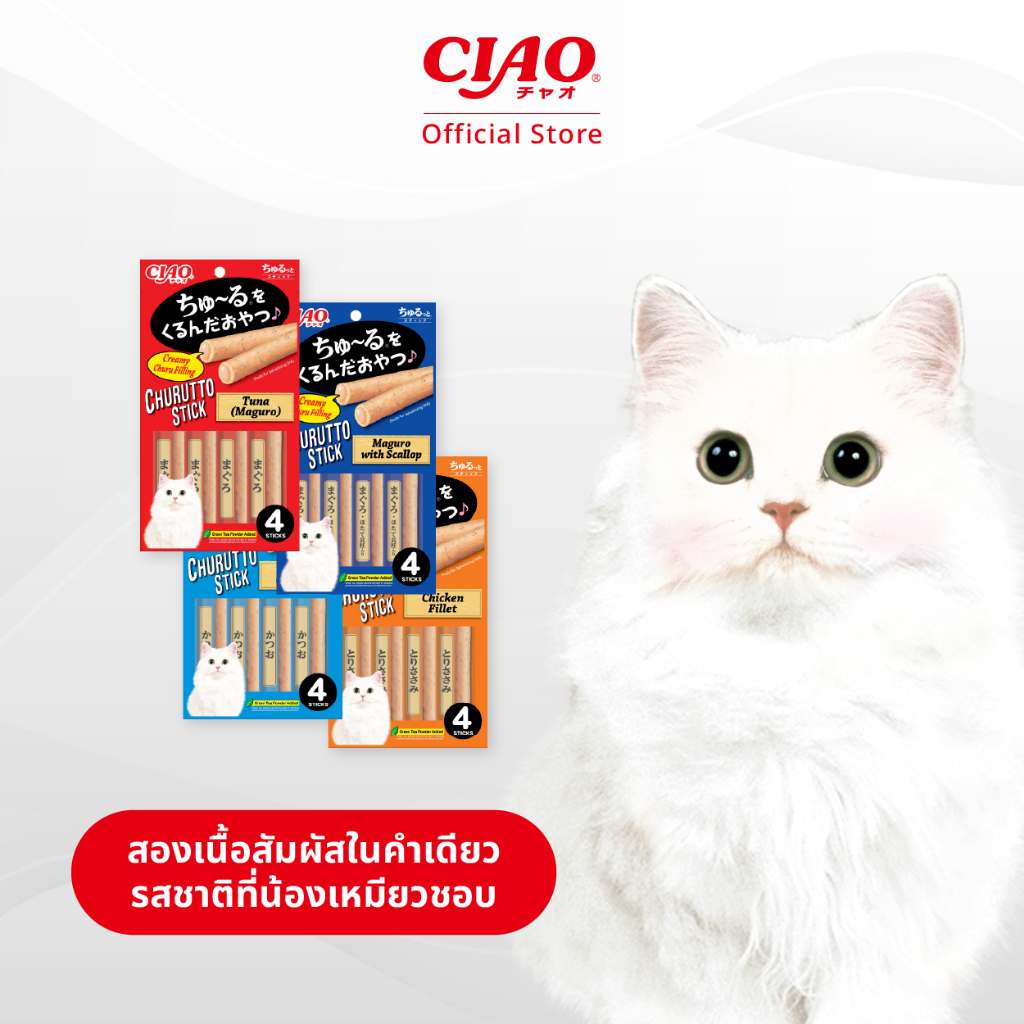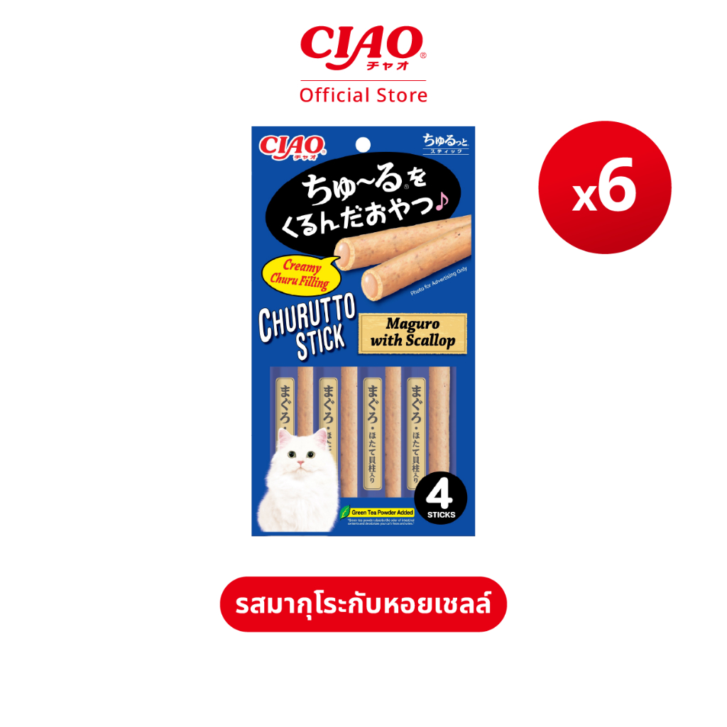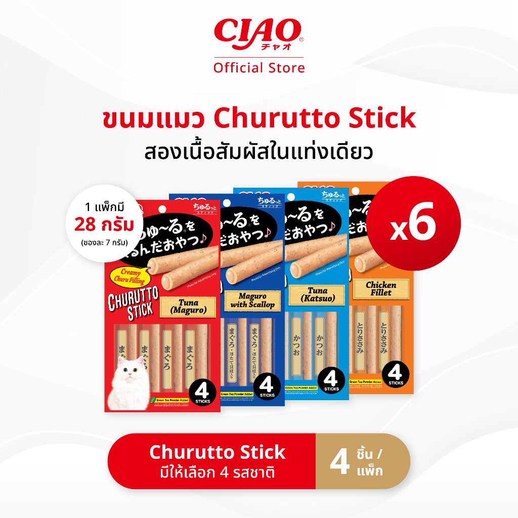 CIAO ชูหรุโตะ สติก ขนมแมวสอดไส้ครีมเลีย 7 กรัม x 4 ชิ้น/แพ็ก (6 แพ็ก) - CS-121/CS-122,CS-123/CS-124