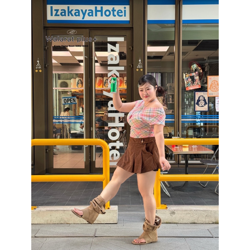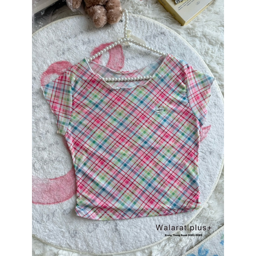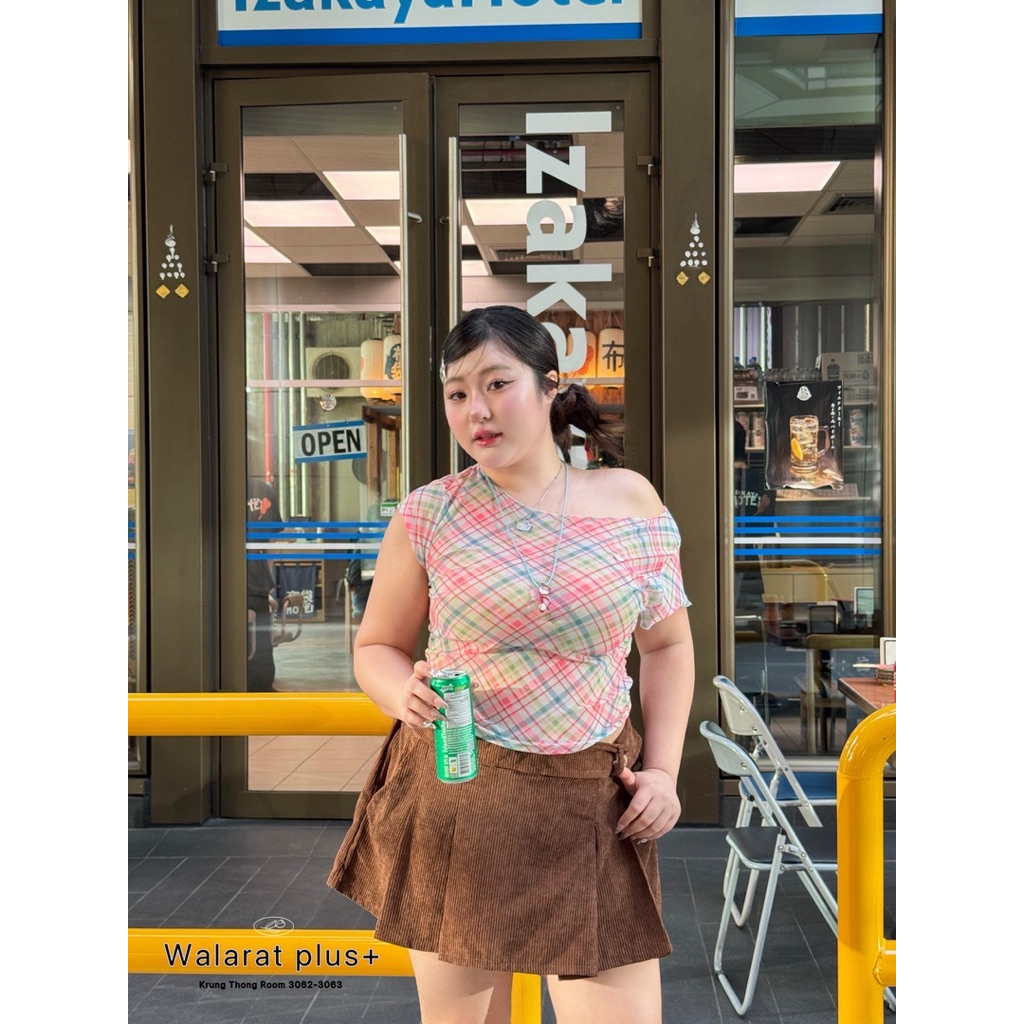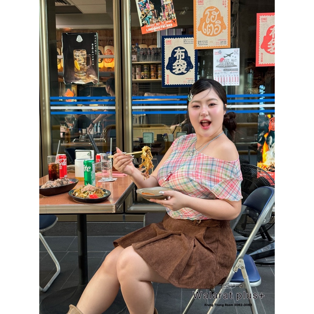 (WR) น้องสายไหม🍭🍡🍬 เสื้อปาดไหล่ลายสก็อต สีหวาน เก๋มาก น่ารักฝุดๆ เสื้อผ้าสาวอวบอ้วน พลัสไซส์ ไซส์ใหญ่