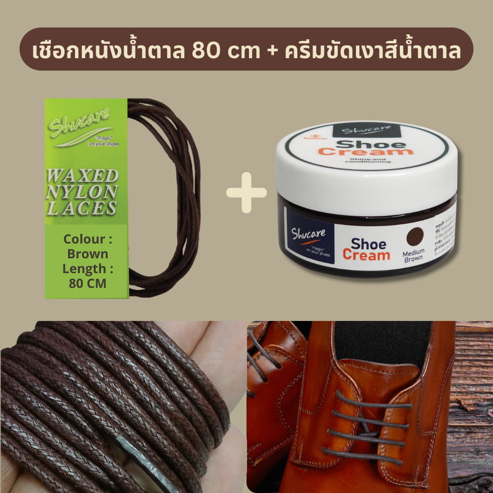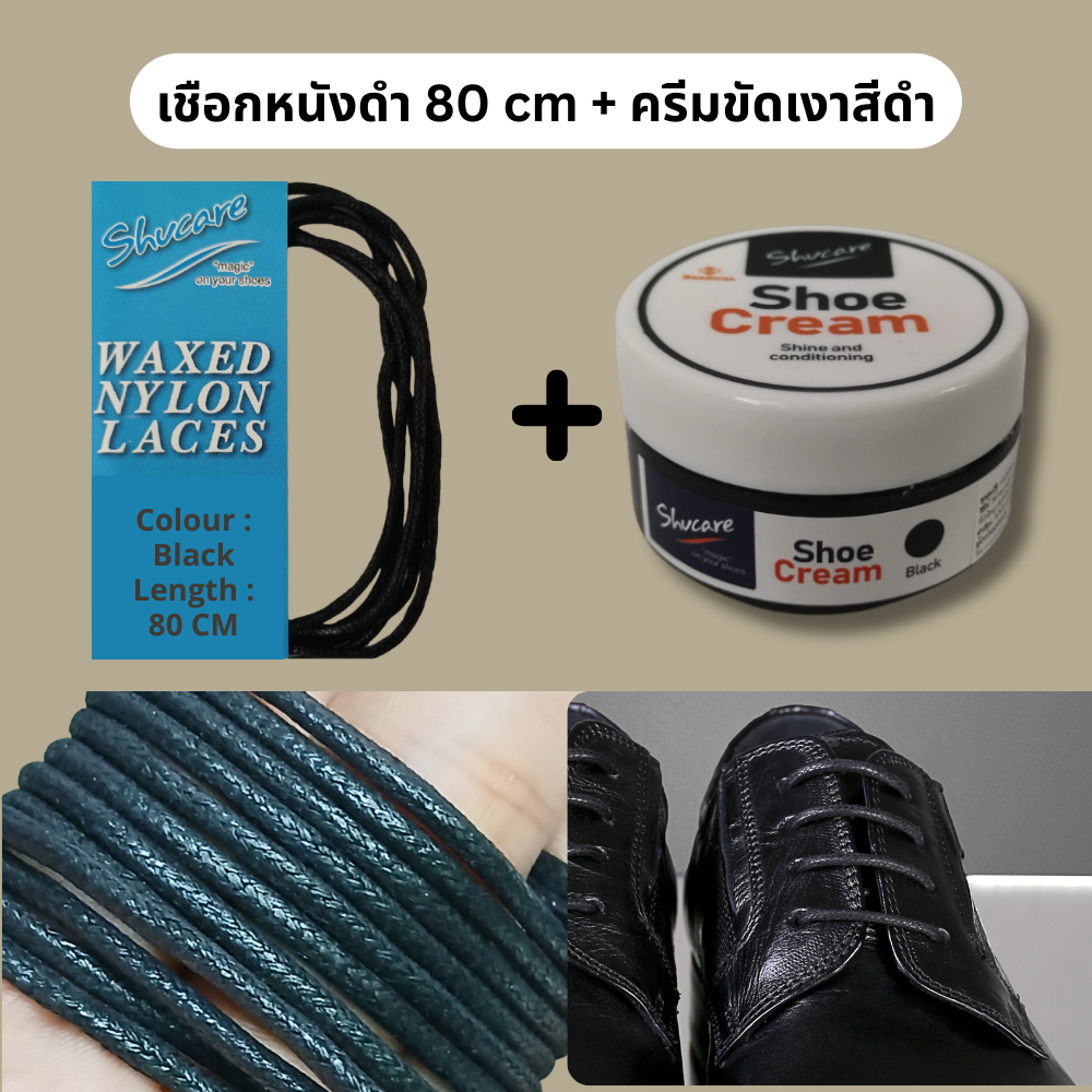 เชือกรองเท้าหนัง แบบกลม เคลือบแว็กซ์อย่างดี (สีดำ และ สีน้ำตาล) 70-80 cm