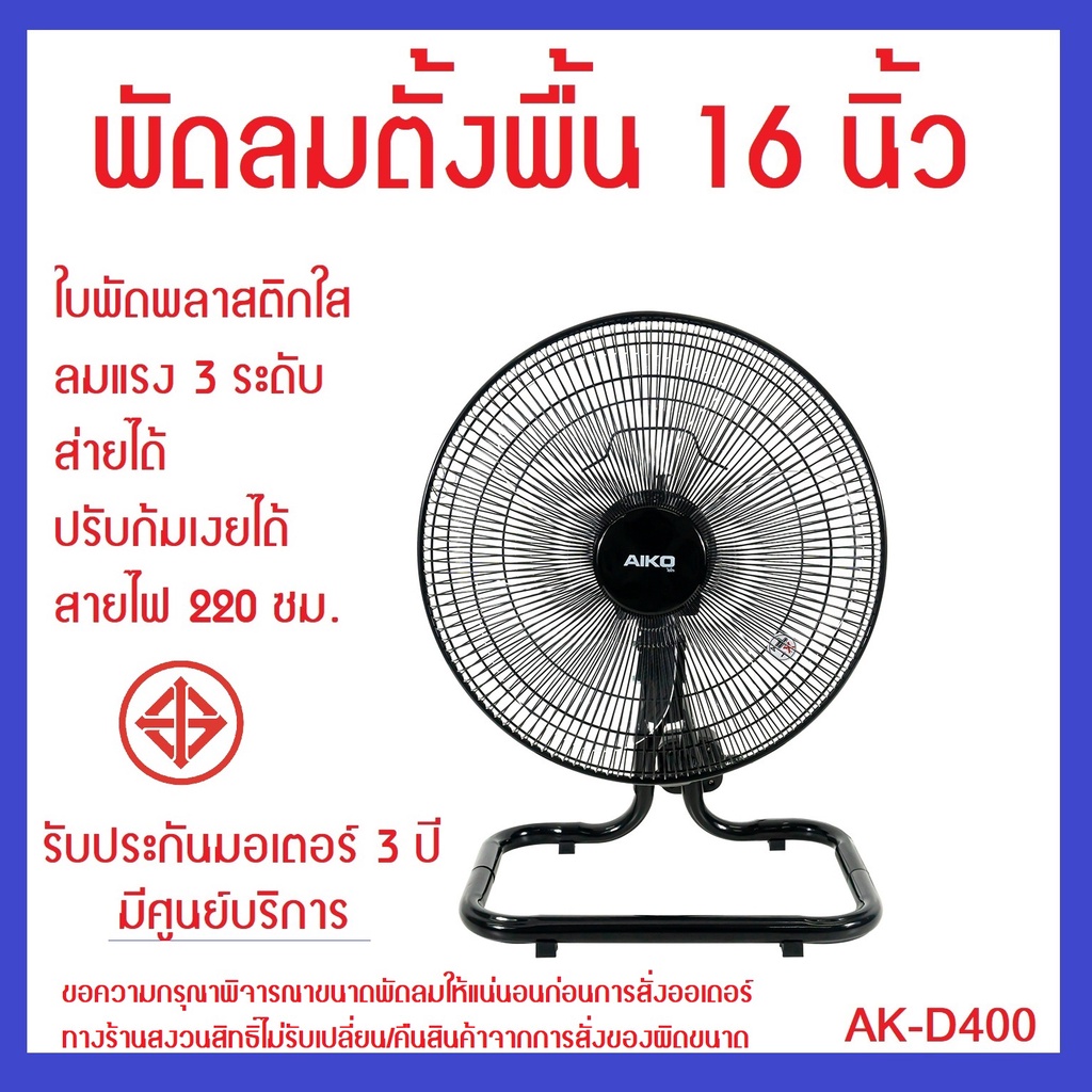 AK-D400 - D401 ตั้งพื้น 16 นิ้ว และตั้งพื้นสไลด์ ใบพัดพลาสติก ส่าย-ก้มเงย ฟิวส์กันไห้ ประกัน3ปี