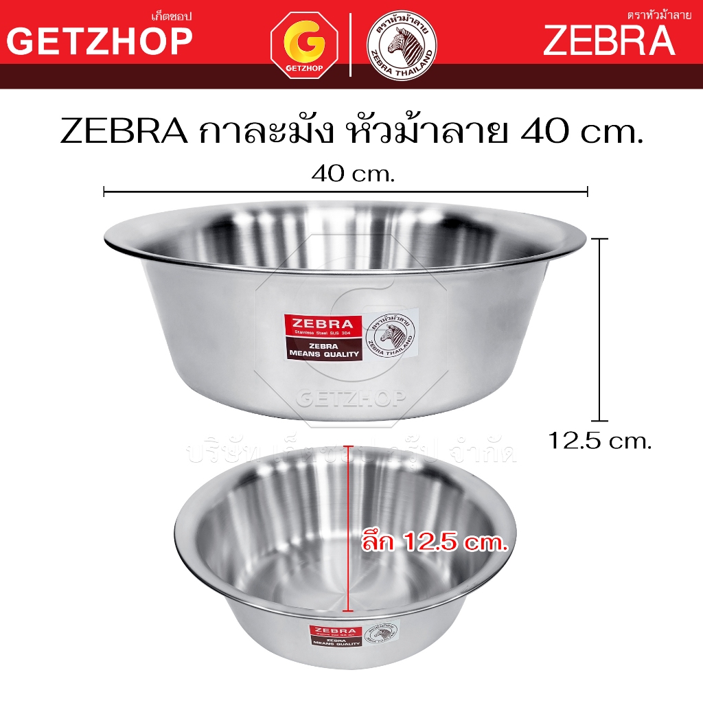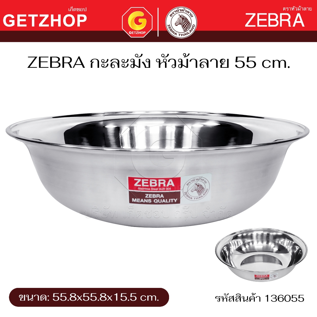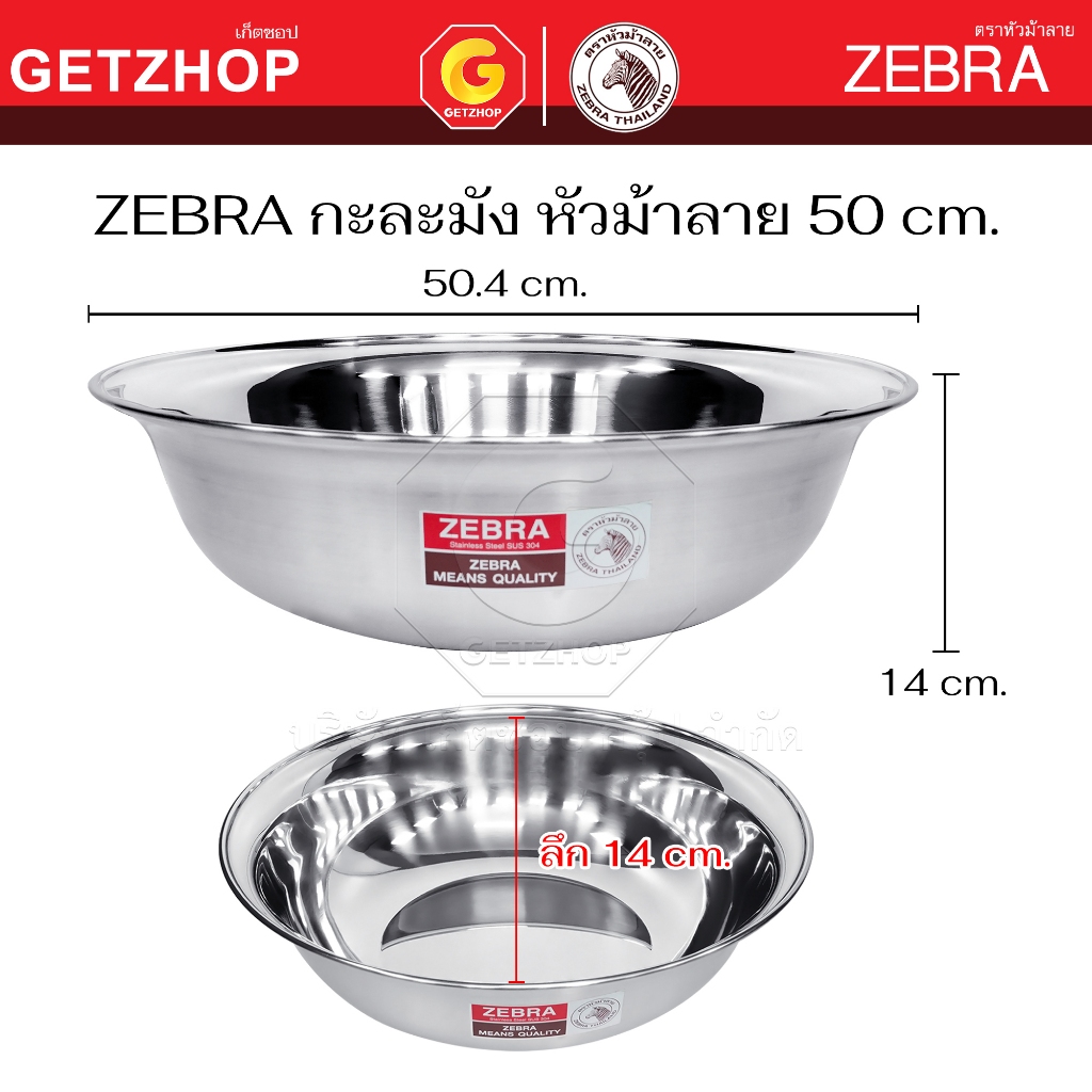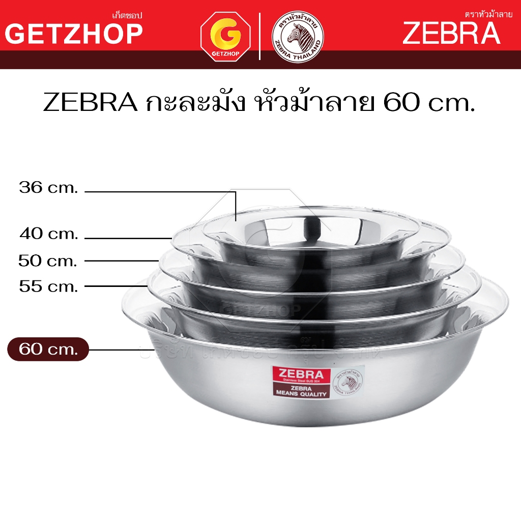 Zebra กะละมัง สแตนเลส กาละมัง ตราหัวม้าลาย ขนาด 36 / 40 / 50 / 55 / 60 ซม.