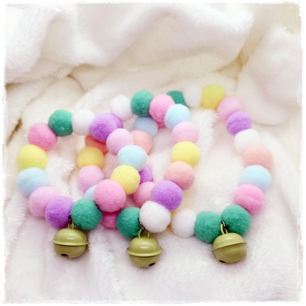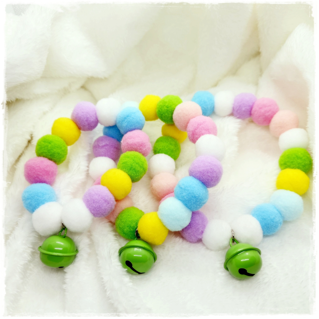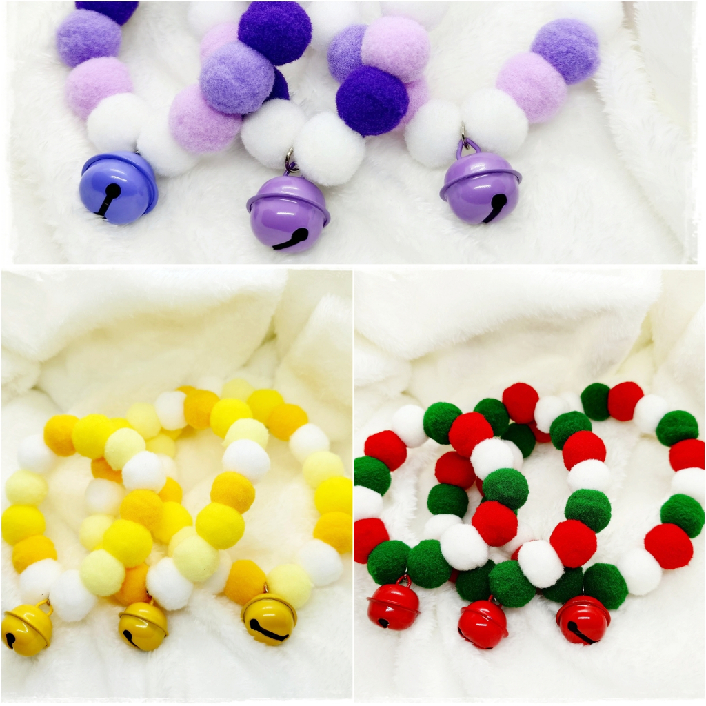 [พร้อมส่ง] ปลอกคอสัตว์เลี้ยง ปลอกคอปอมปอม ขนาด 15, 20, 25 ซม. เอ็นยืด งานทำมือ