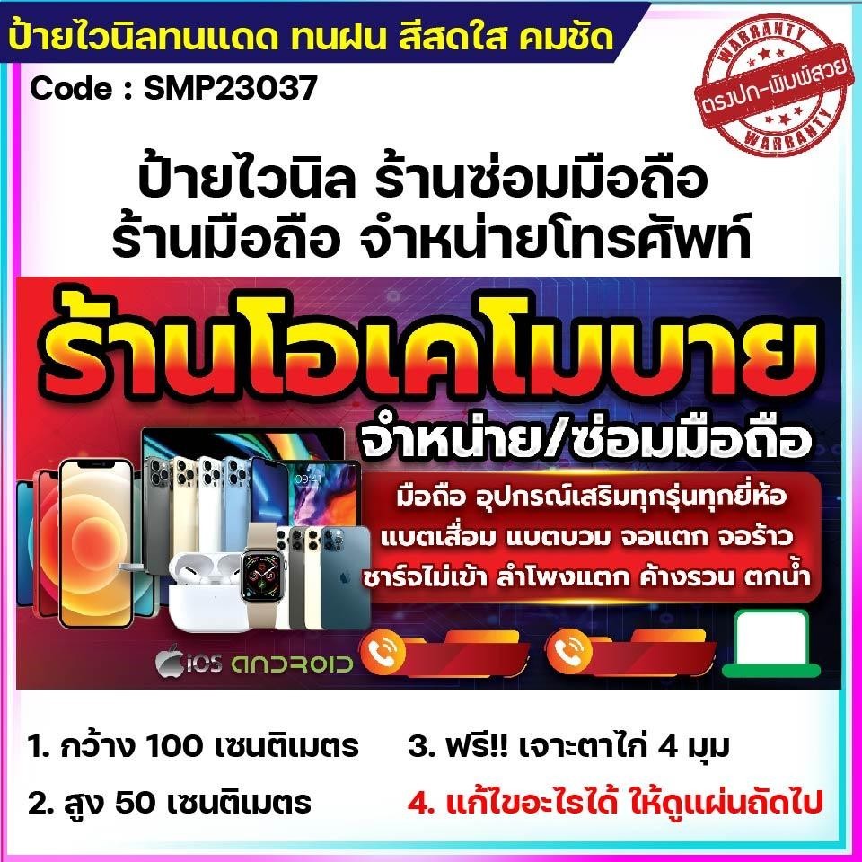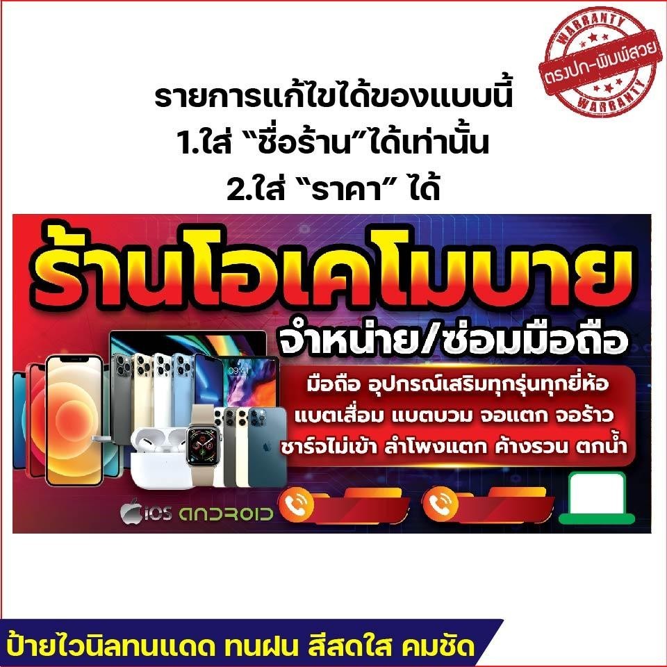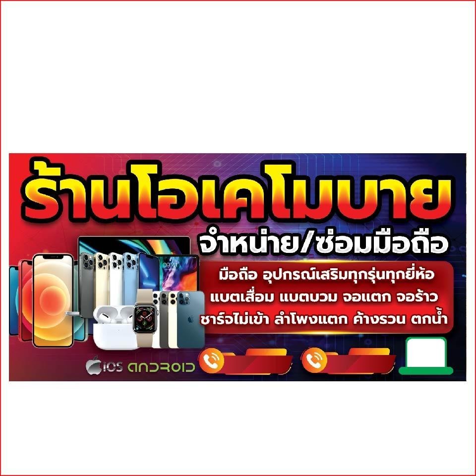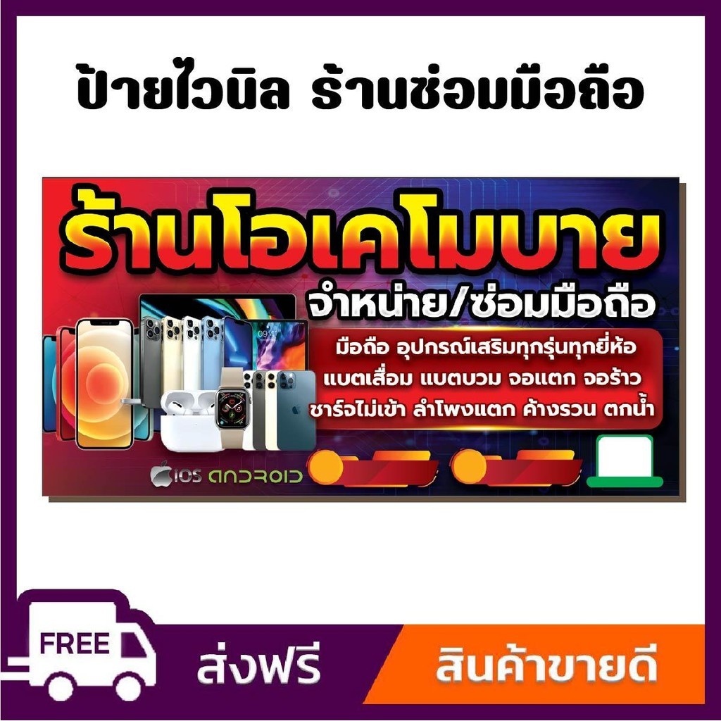 ป้ายไวนิลป้ายโฆษณาหนา 360 แกรม ร้านซ่อมมือถือร้านมือถือจำหน่ายโทรศัพท์ ขนาด 100x50cm เจาะตาไก่ 4 มุม