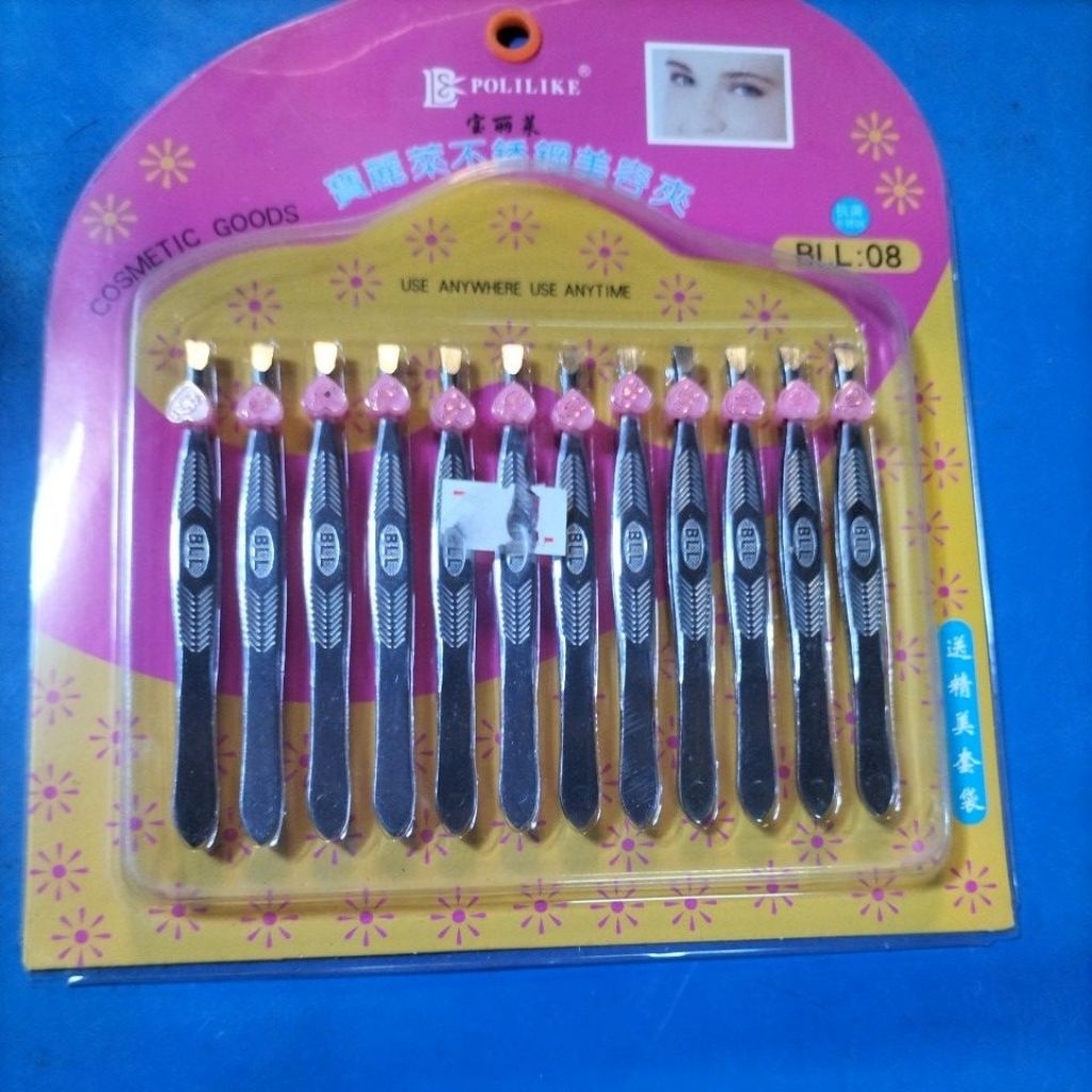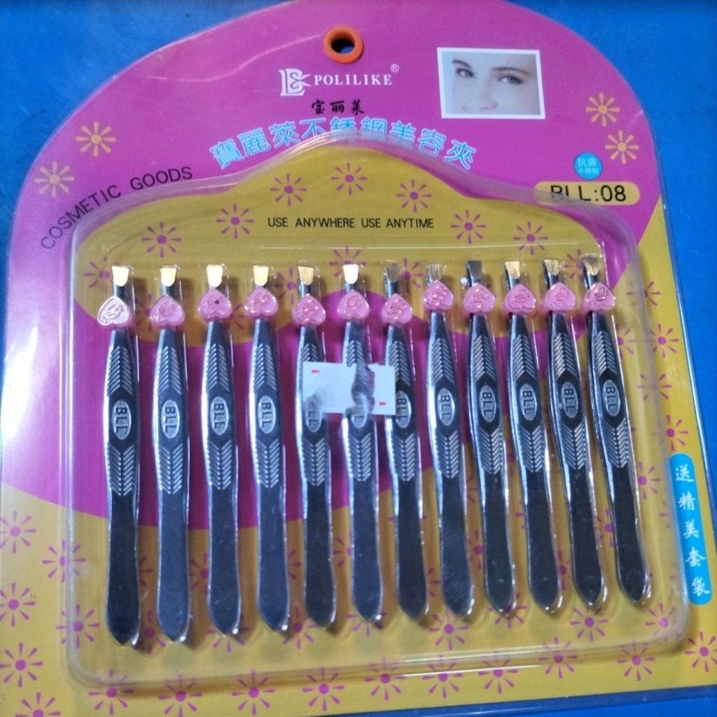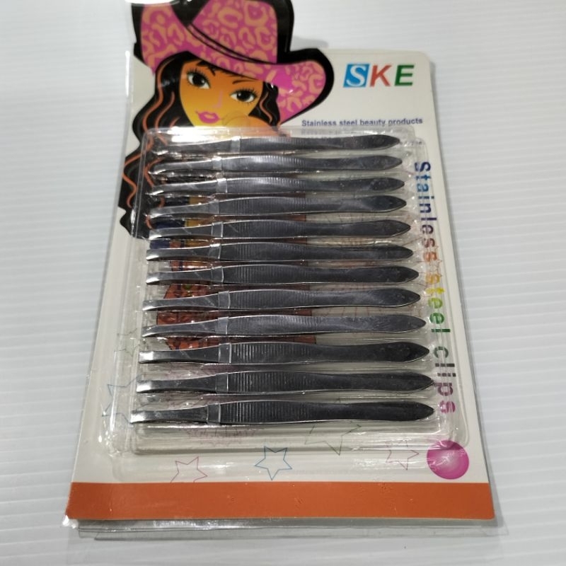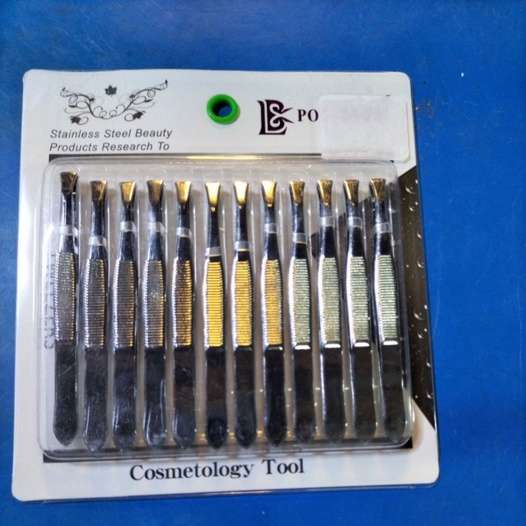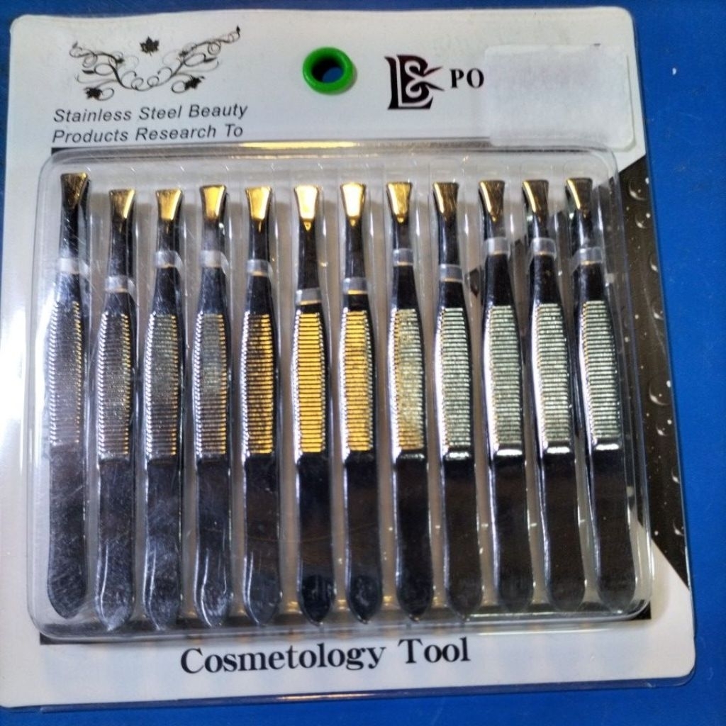 12ชิ้นเเหนบสเเตนเลสเเละสีเงินแหนบถอนขน