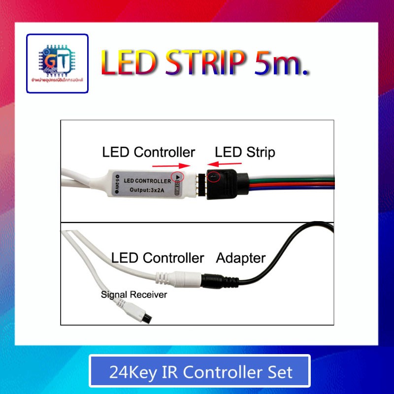 ไฟ LED แบบเส้นยาว 5 เมตร LED strip 12v RGB-24Key Set SMD 2835