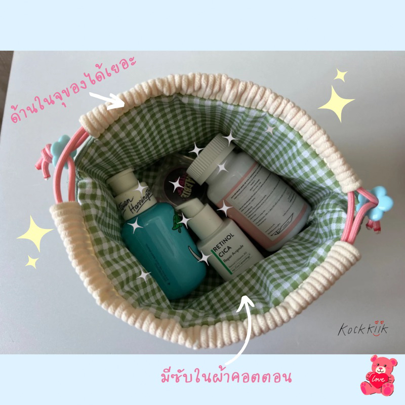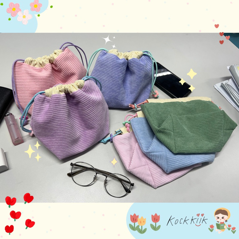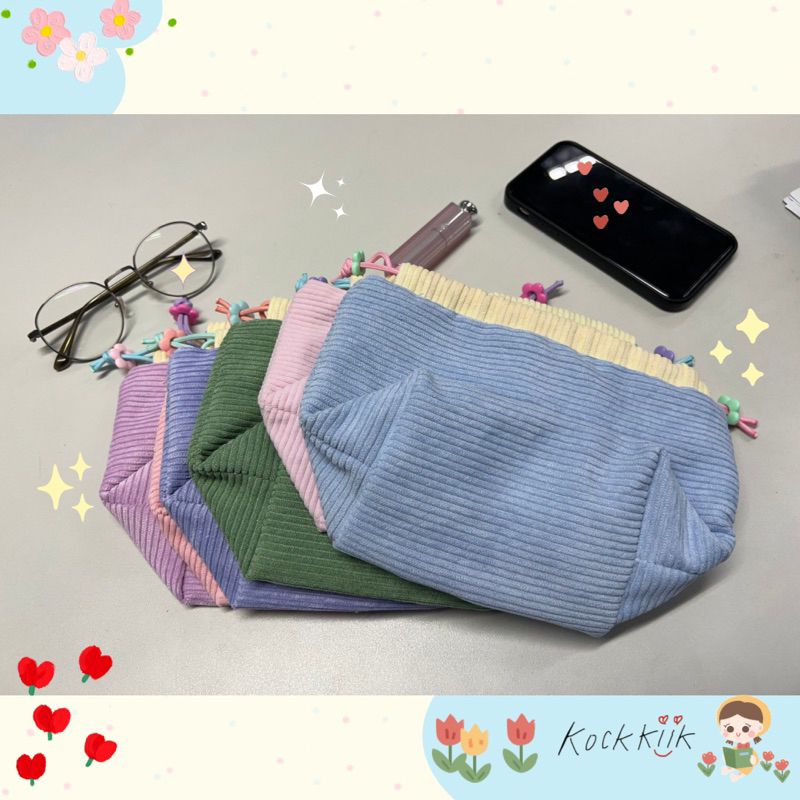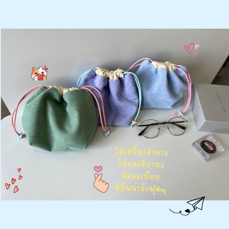 🎀กระเป๋าหูรูดผ้าลูกฟูกไซต์ใหญ่แบบเย็บก้น ใส่เครื่องสำอาง ของจุกจิก จัดระเบียบกระเป๋า