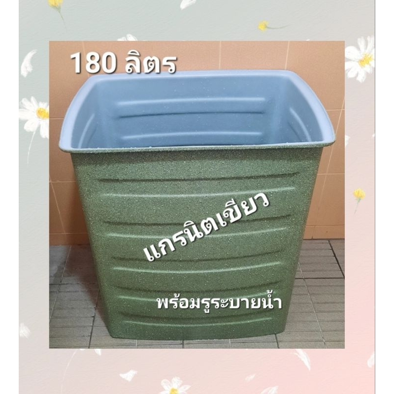 ถังน้ำ ถังน้ำสี่เหลี่ยมพลาสติก 180 ลิตร พร้อมรูระบายน้ำ ก×ย×ส 46×65×73ซม.สีแกรนิตทรายกันตะไคร่(สั่งซื้อได้ครั้งละใบ)