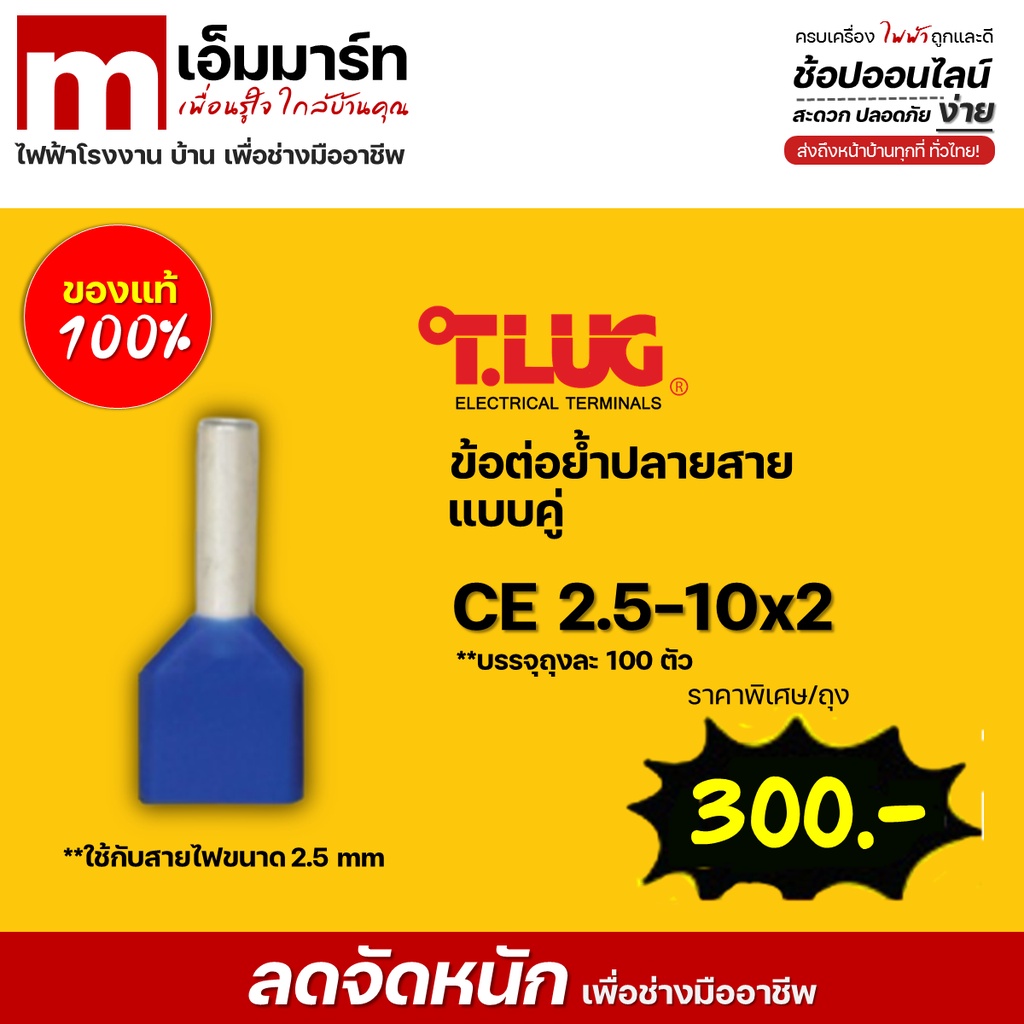 ข้อต่อย้ำปลายสายเเบบคู่ T.LUG CE2.5-10x2