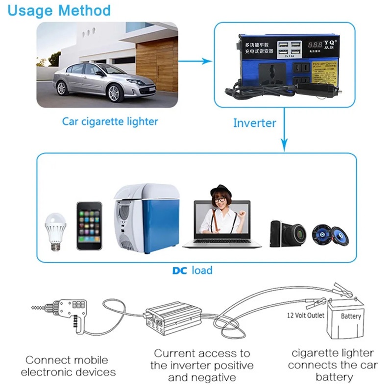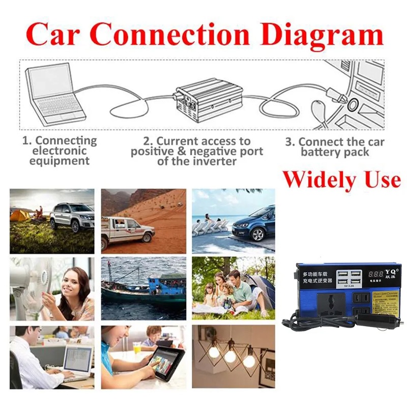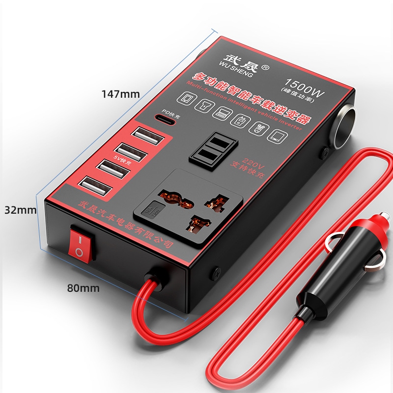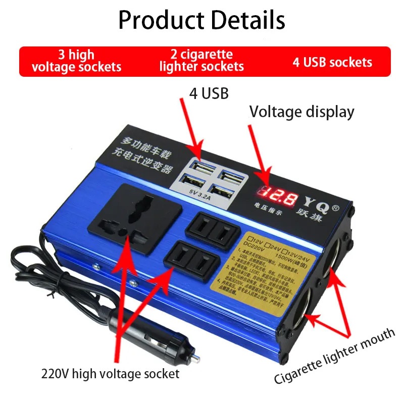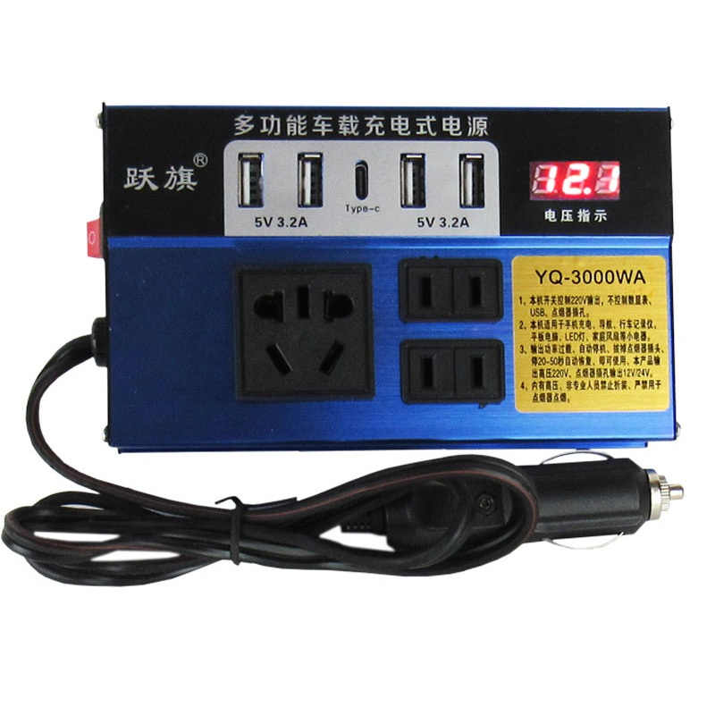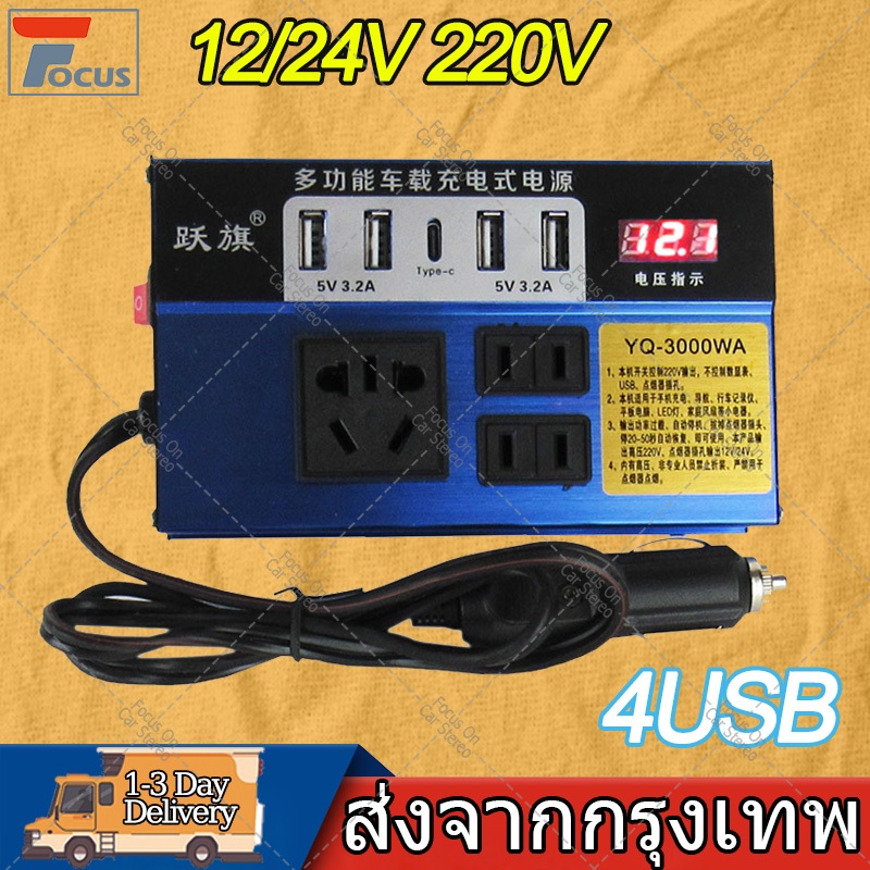 4USB เครื่องแปลงไฟรถยนต์ อินเวอร์เตอร์รถยนต์มัลติฟังก์ชั่น 12v 24Vเป็น 220 Car Power Inverter อินเวอร์เตอร์