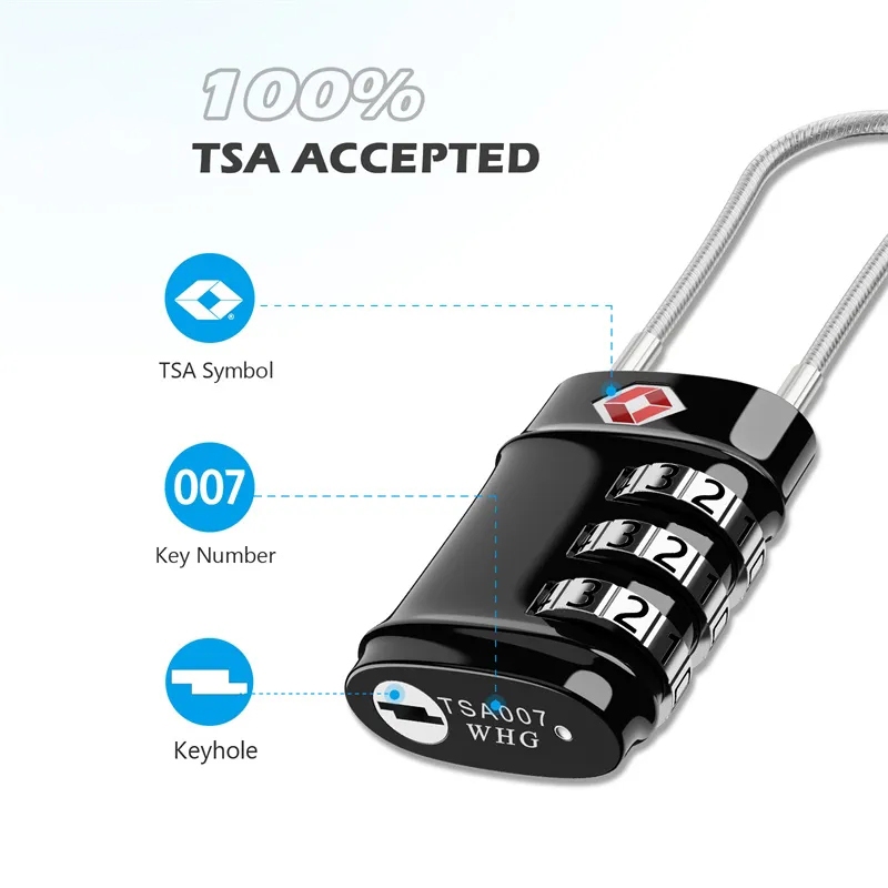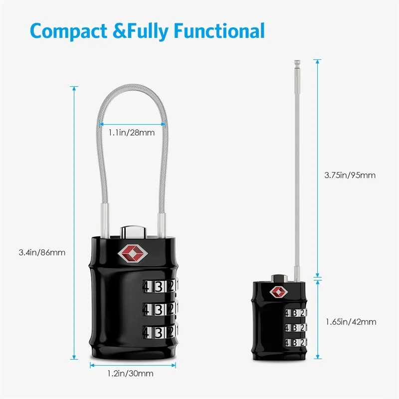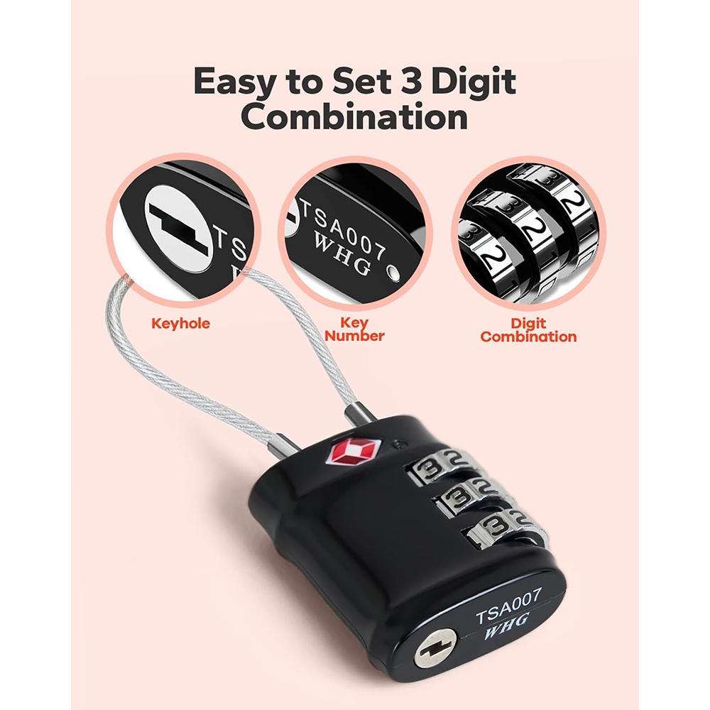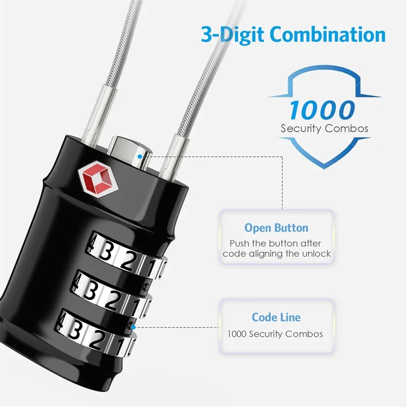 Kiprun กระเป๋าล็อคสายเคเบิลเดินทางล็อค, TSA อนุมัติสายเคเบิลเดินทางรวมกุญแจความปลอดภัย