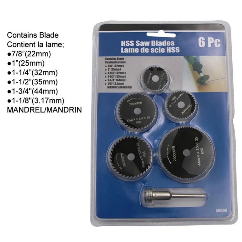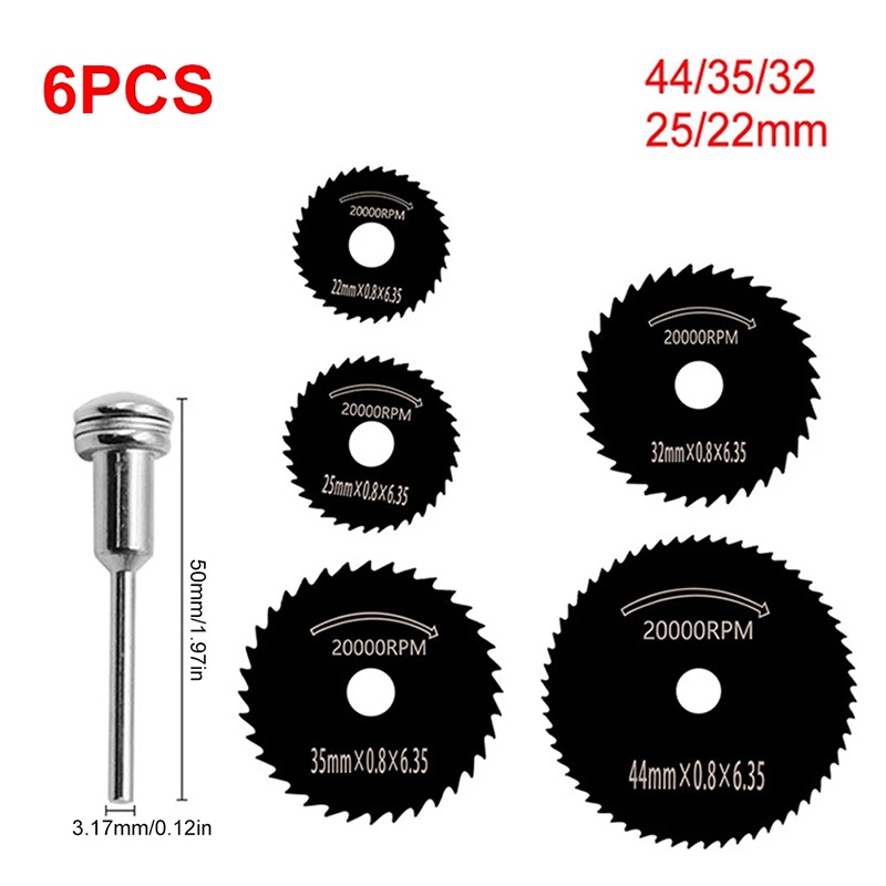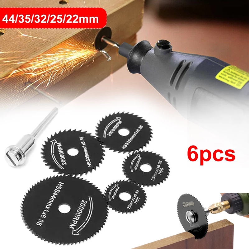 Kiprun 6 ชิ้น Mini HSS ใบเลื่อยวงเดือนเครื่องมือโรตารี่สําหรับ Dremel เครื่องตัดโลหะเครื่องมือตัดไม้แ ผ่นเจาะ Mandrel Cutoff 22-44 มิลลิเมตร