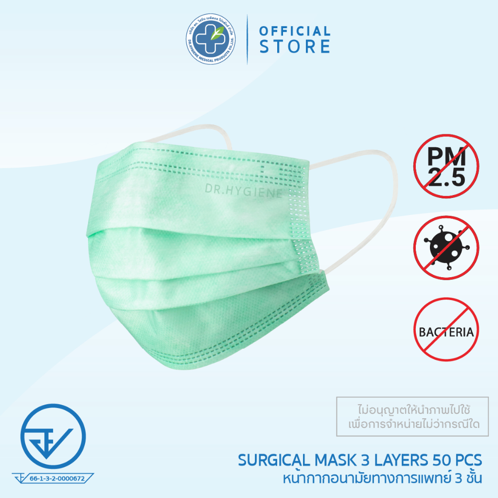 [Official] Dr. Hygiene Surgical Mask หน้ากา กอนามัยทางการแพทย์ดร.ไฮจีน 3ชั้น (50ชิ้น/กล่อง)