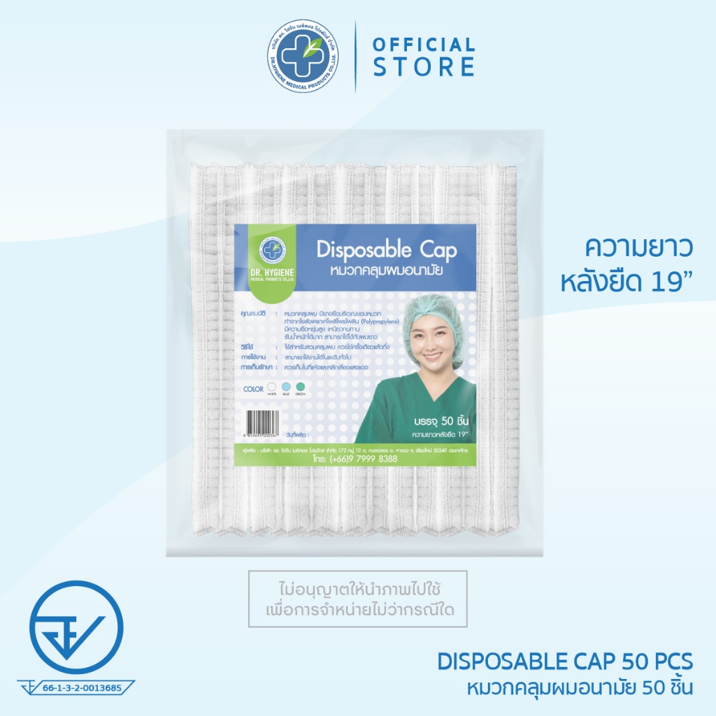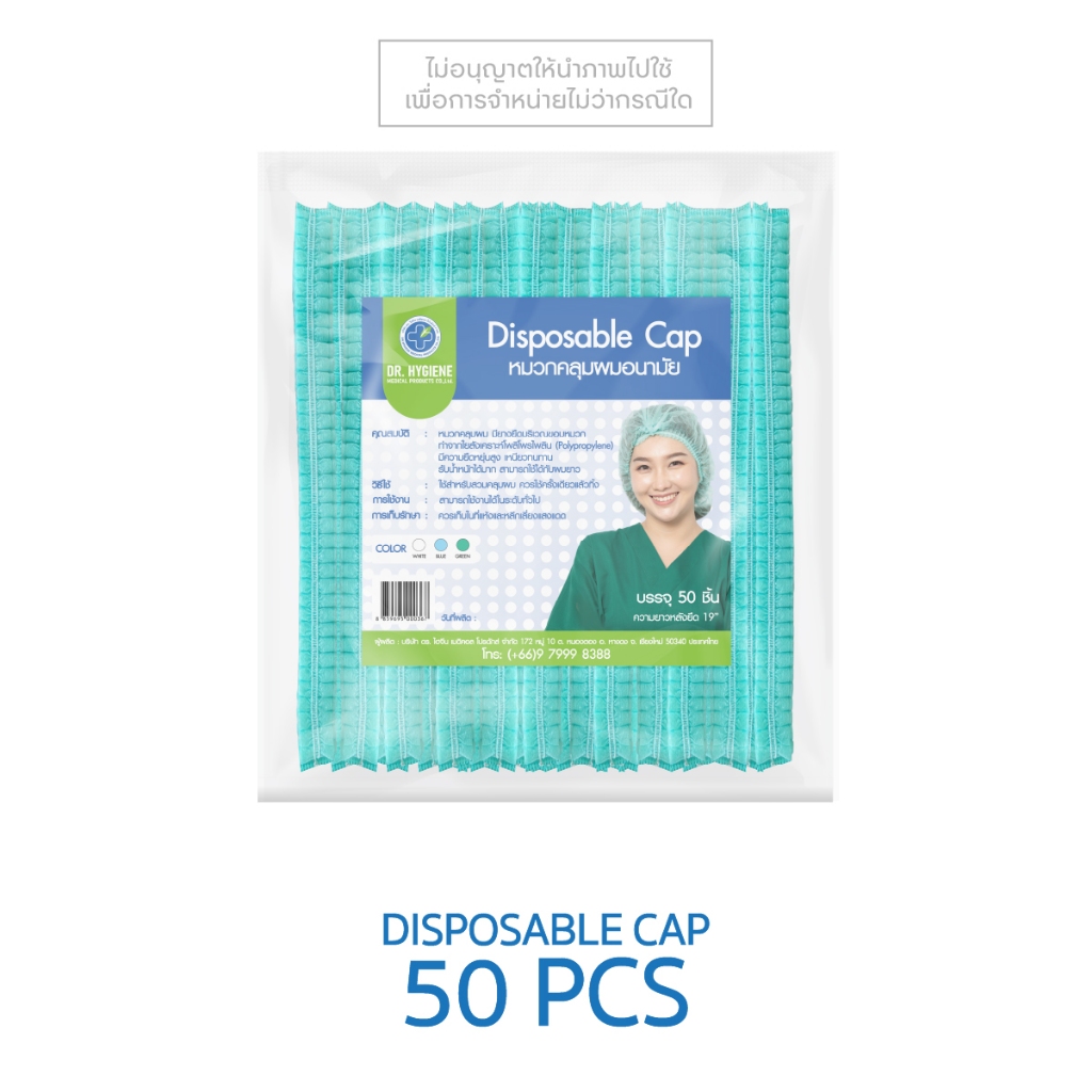 [Official] Dr. Hygiene Disposable cap หมวกคลุมผม เกรดการแพทย์ AAA+ เหนียวทนทาน (50ชิ้น/แพ็ค)