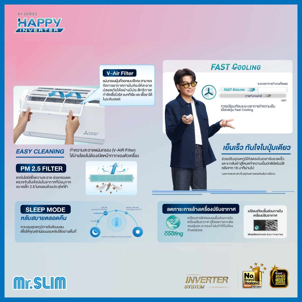 MITSUBISHI ELECTRIC แอร์ติดผนัง Inverter รุ่น MSY-KY09VF 9212 BTU ไม่รวมติดตั้ง