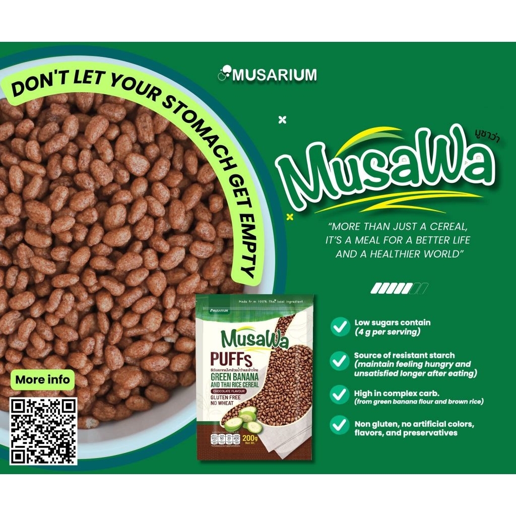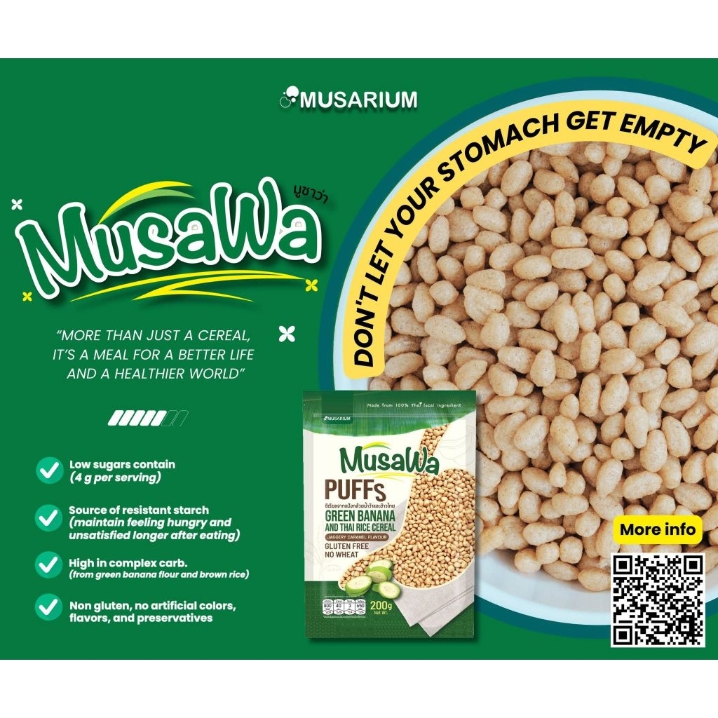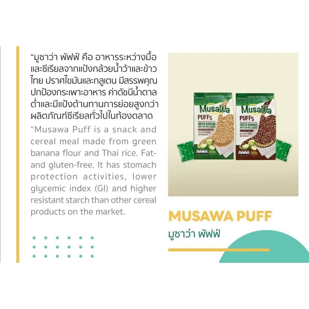 Musawa Puff ซีเรียลกล้วยน้ำว้าไร้กลูเตน ผสมข้าวไทย ฮาลาล กรอบอร่อย ไขมันต่ำ เหมาะควบคุมน้ำหนัก