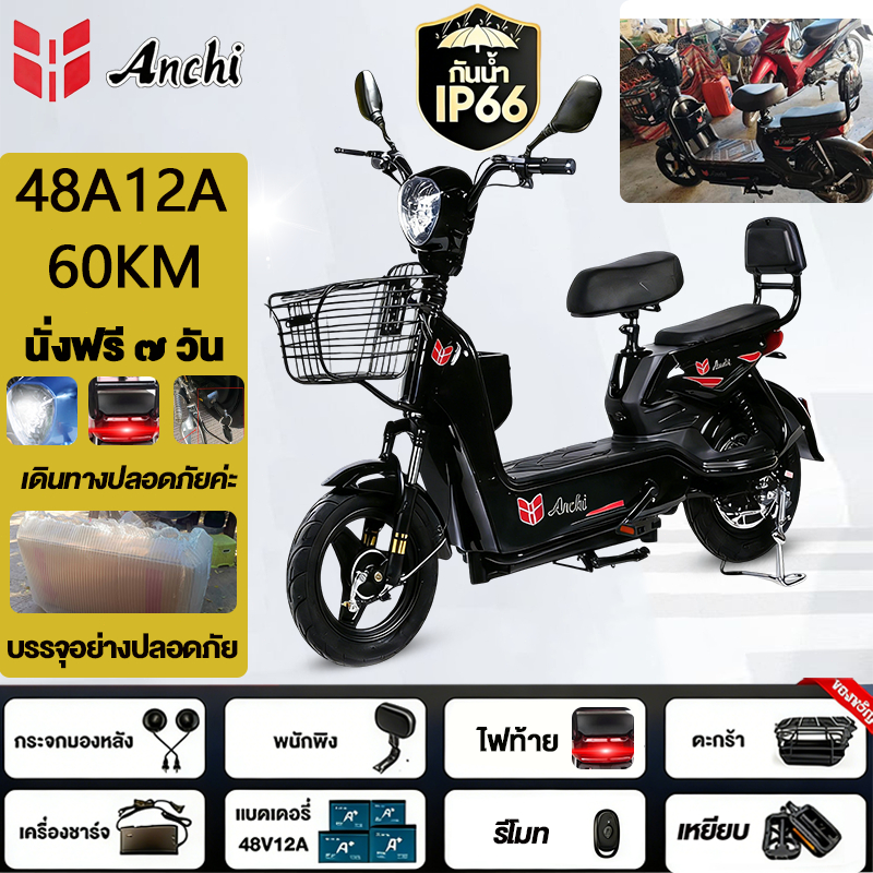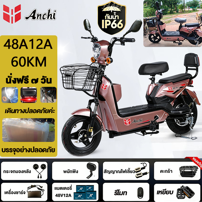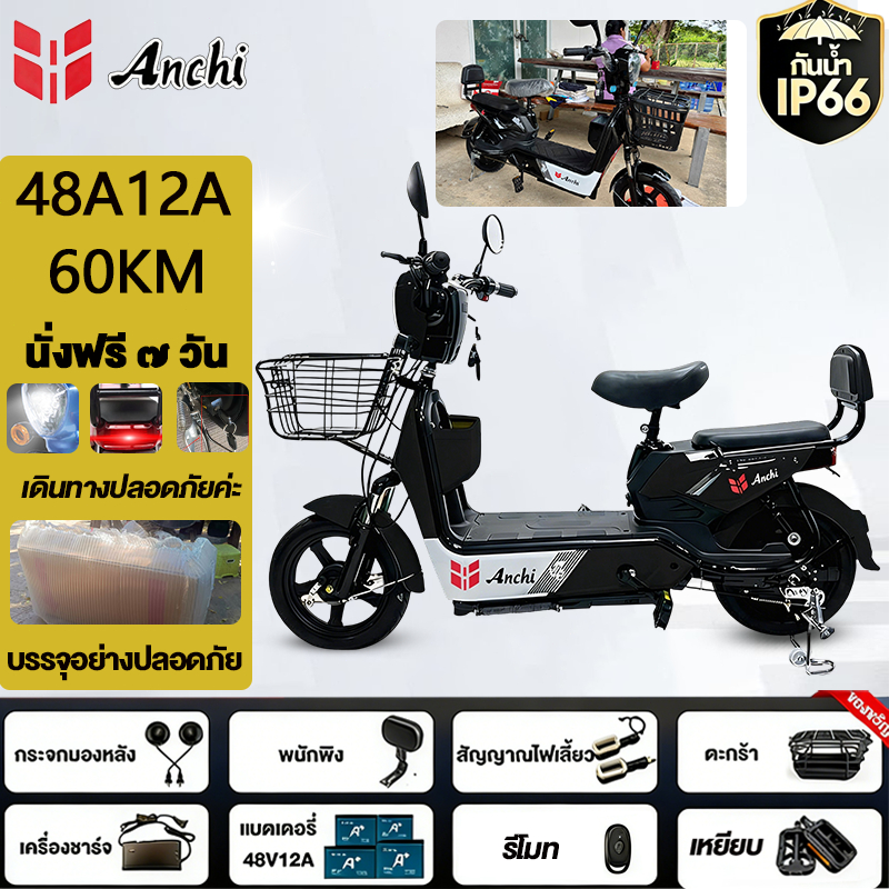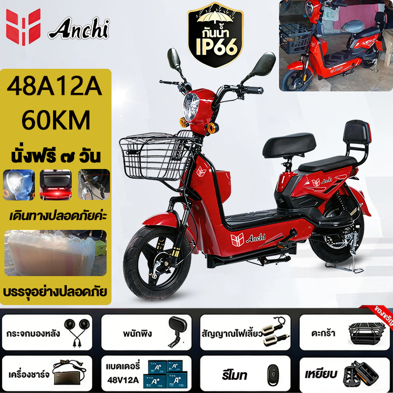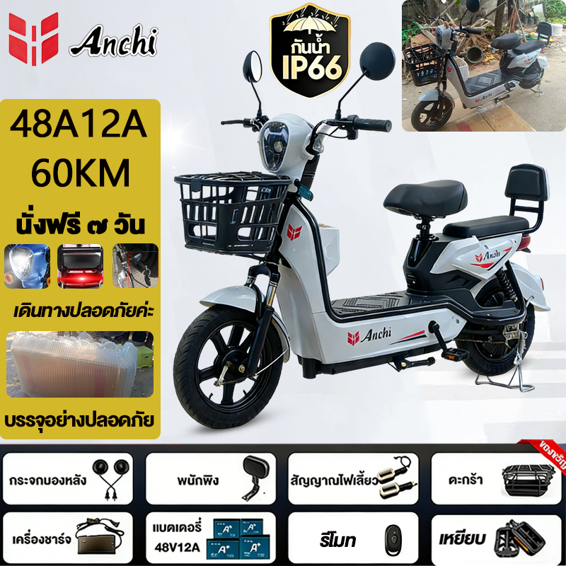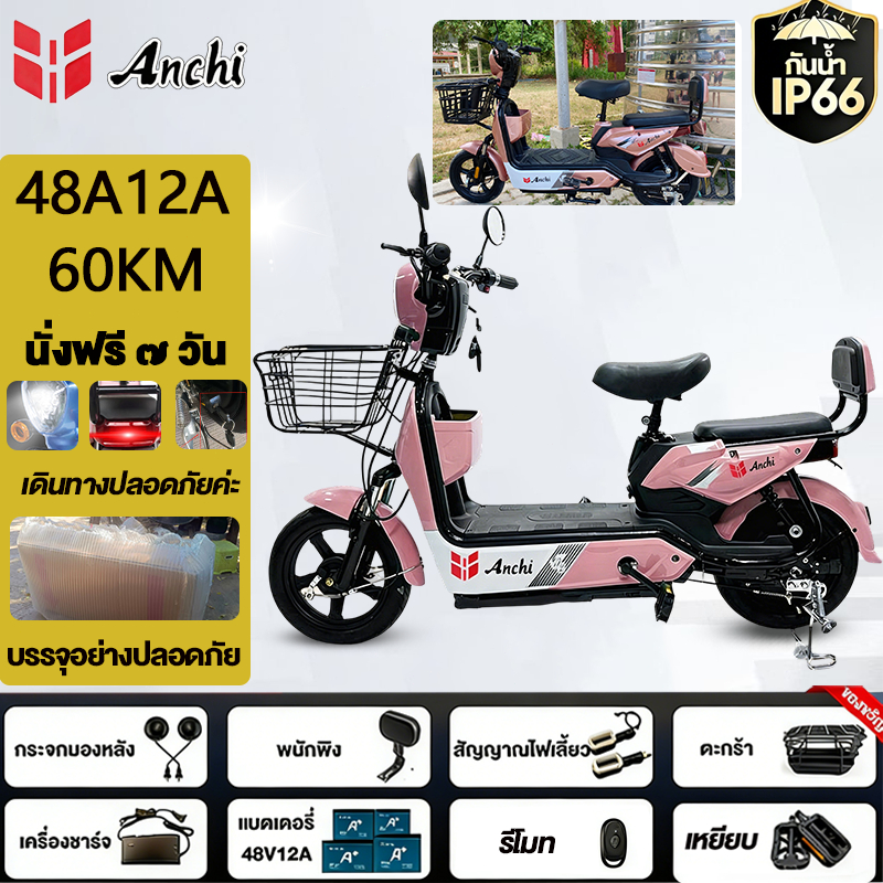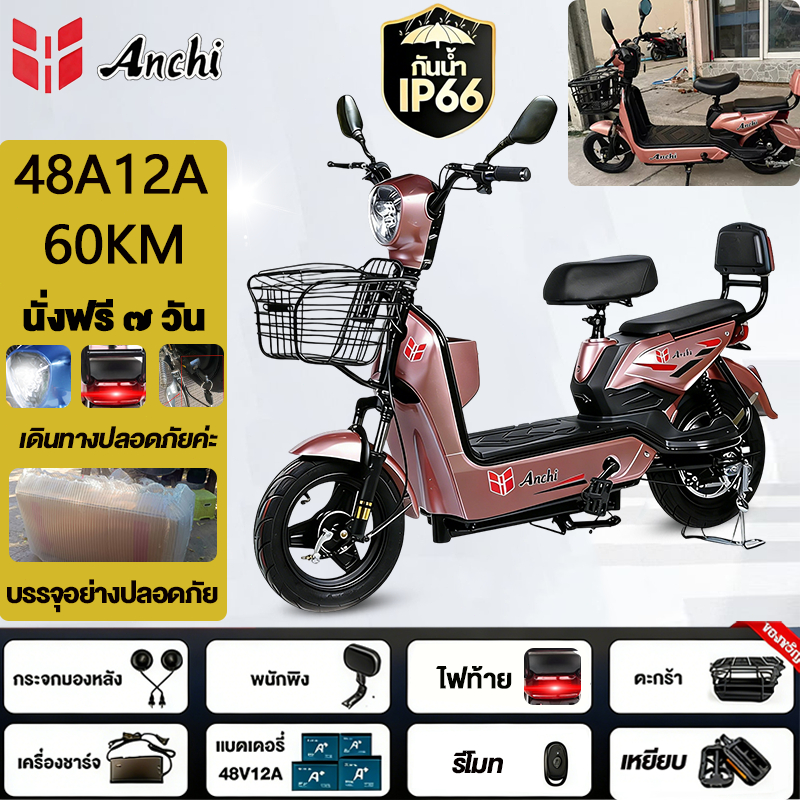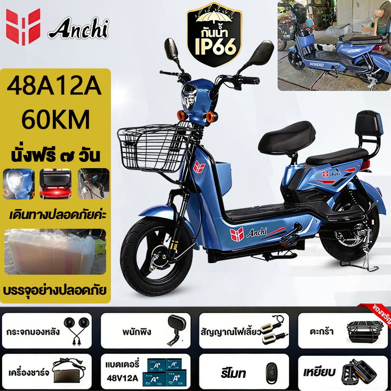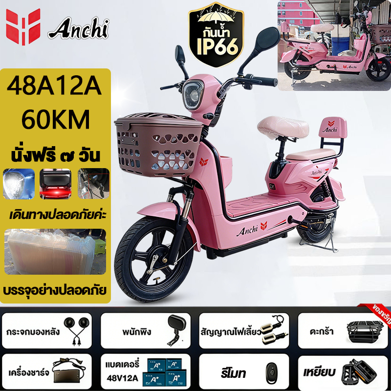 Anchi จักรยานไฟฟ้า สกู๊ตเตอร์ไฟฟ้า 48V12A มอเตอร์แรงดันสูง ระยะทางไกล กันน้ำ ไปทำงาน รับประกัน