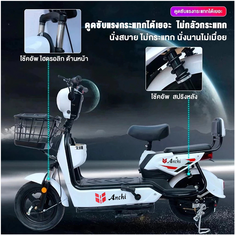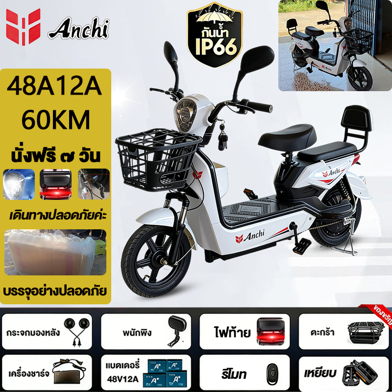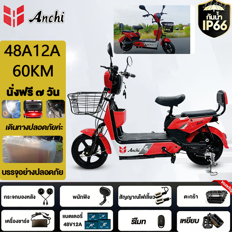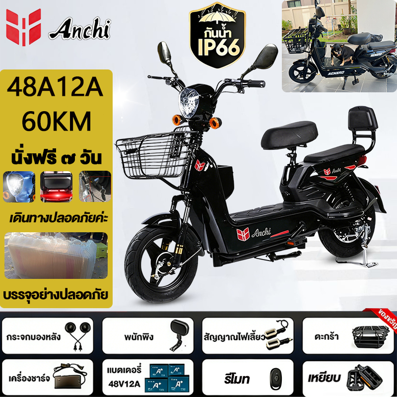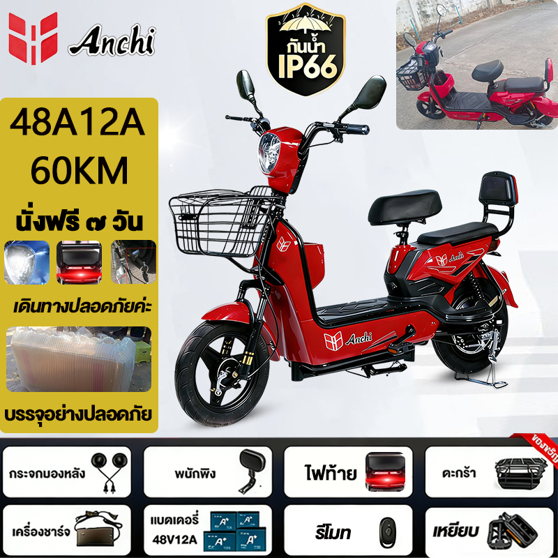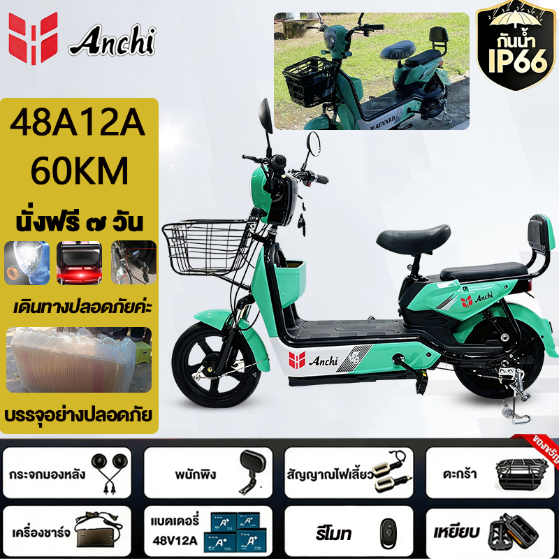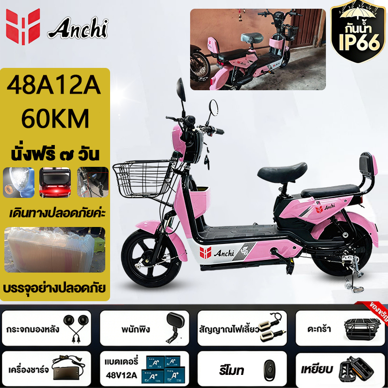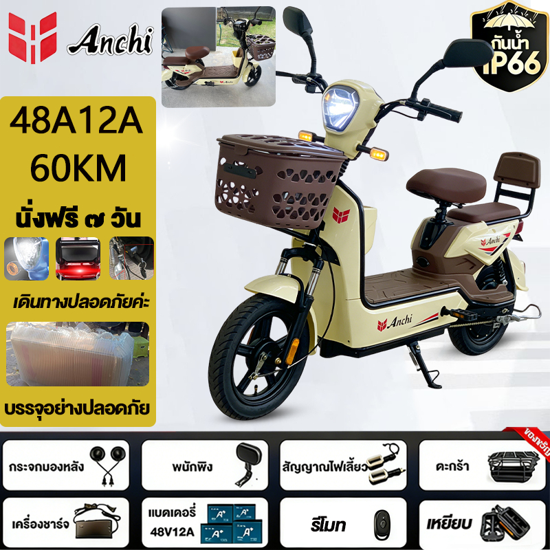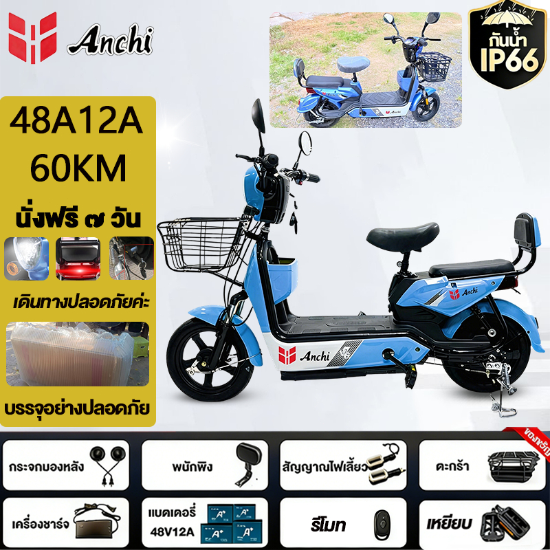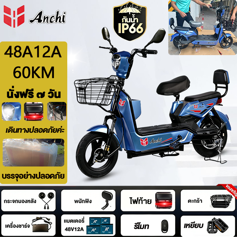 Anchi จักรยานไฟฟ้า สกู๊ตเตอร์ไฟฟ้า 48V12A มอเตอร์แรงดันสูง ระยะทางไกล กันน้ำ ไปทำงาน รับประกัน