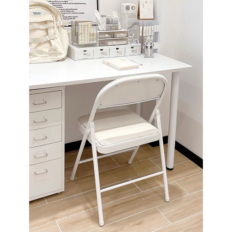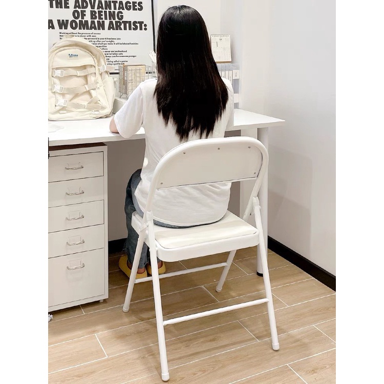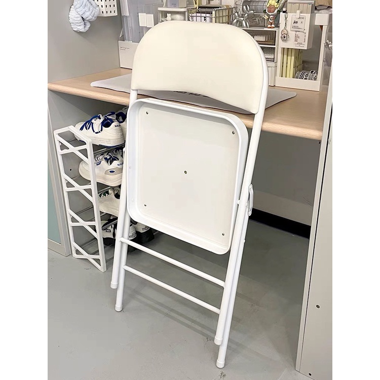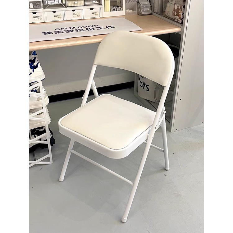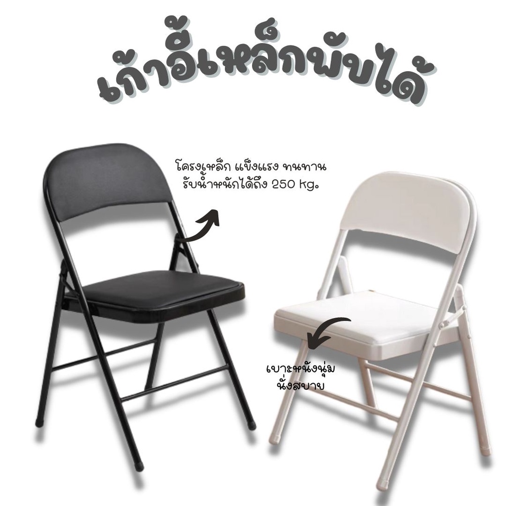 MeeBan เก้าอี้เหล็กพับได้ เบาะหนัง สไตล์เกาหลี ขนาดเมื่อกาง 45x47x98 cm รับน้ำหนัก 150KG