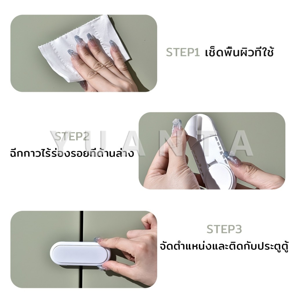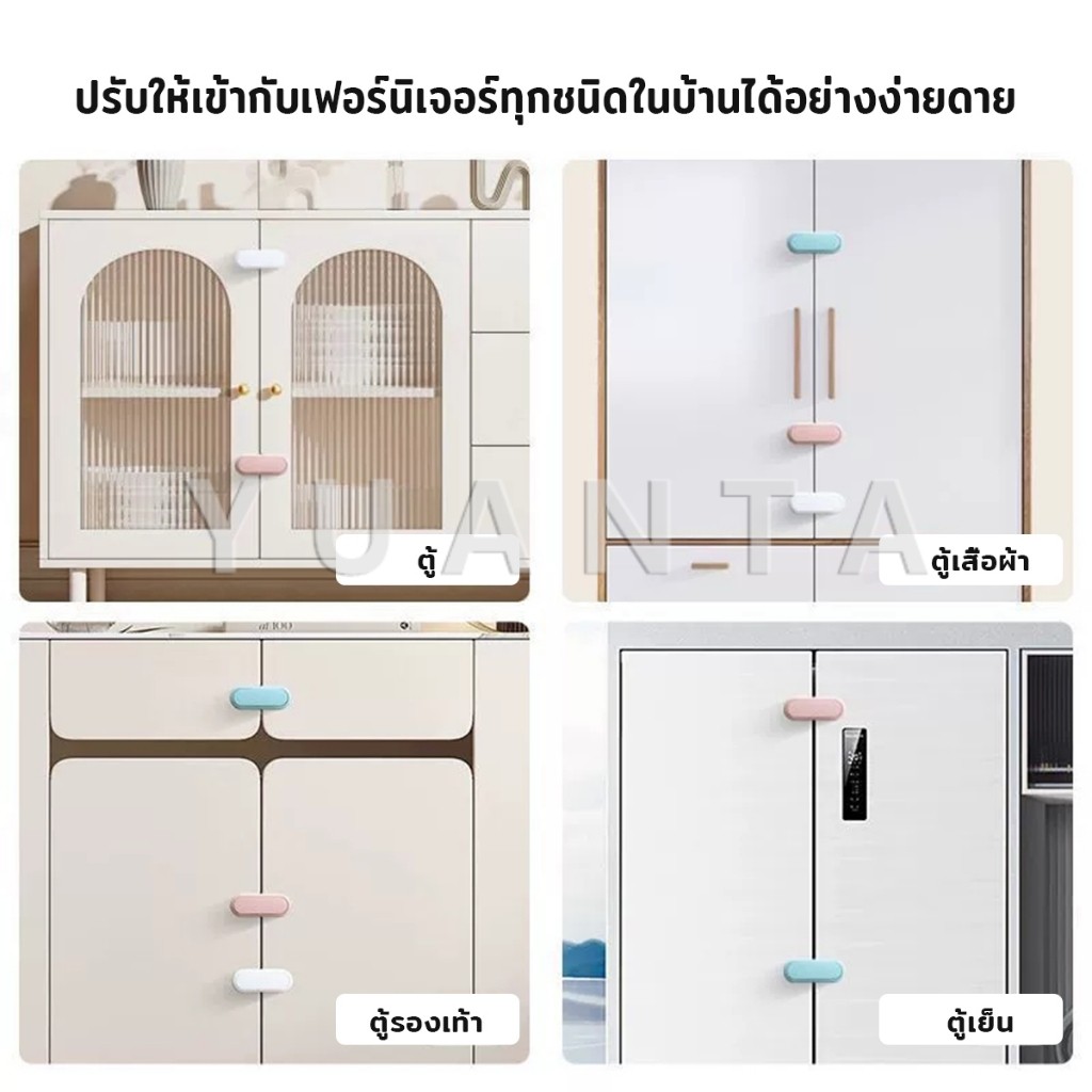 Yuanta กลอนประตูตู้เสื้อผ้า ลิ้นชัก เพื่อความปลอดภัยของเด็ก กลอนประตูตู้เย็น มีกาวในตัว Child safety lock
