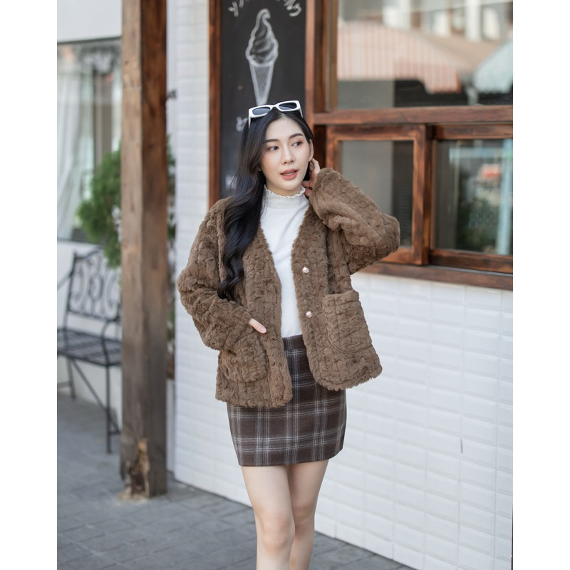 CO108 เสื้อคลุมขนเฟอร์ ขนถักแน่นไม่หลุดง่าย ไม่ระคายผิว รุ่น MINI FUR COAT COATMEE