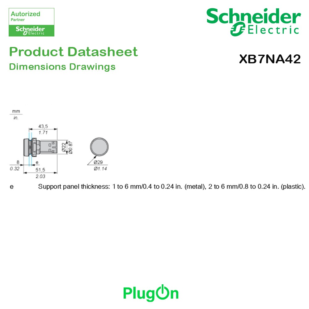 Schneider Electric - Push button switch สวิตช์ปุ่มกด ขนาด 22 mm, สีแดง, 1NC_XB7NA42 ที่ร้าน PlugOn