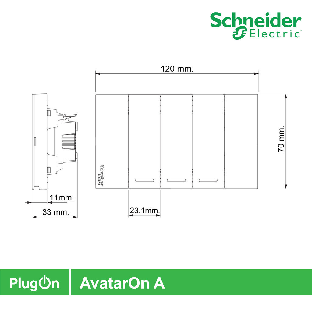 แพ็ค10 | Schneider ชุดสวิตช์ทางเดียวขนาด 3 ช่อง สีดำ รุ่น AvatarOn A | A7033F_BK | PlugOn