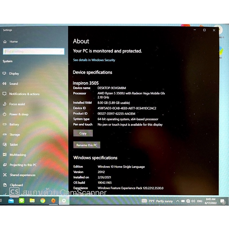 ขาย Notebook DELL Inspiron 3505 AMD Ryzen 5 3500U , 512 GB SSD PCIe M.2