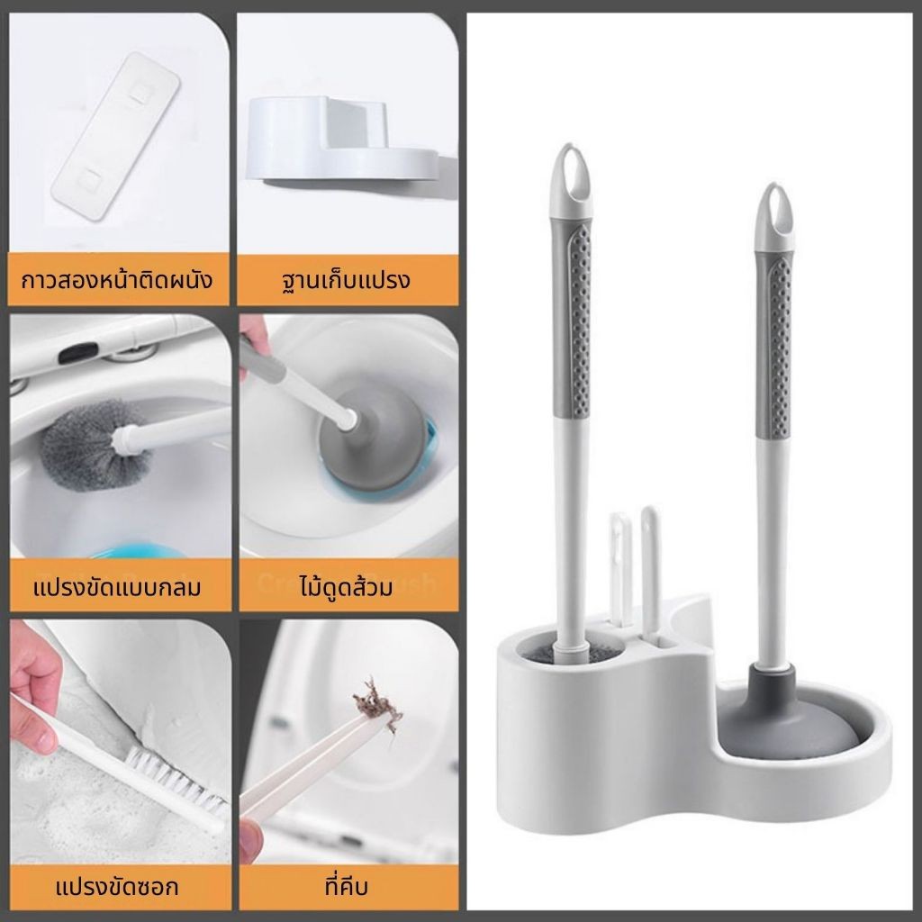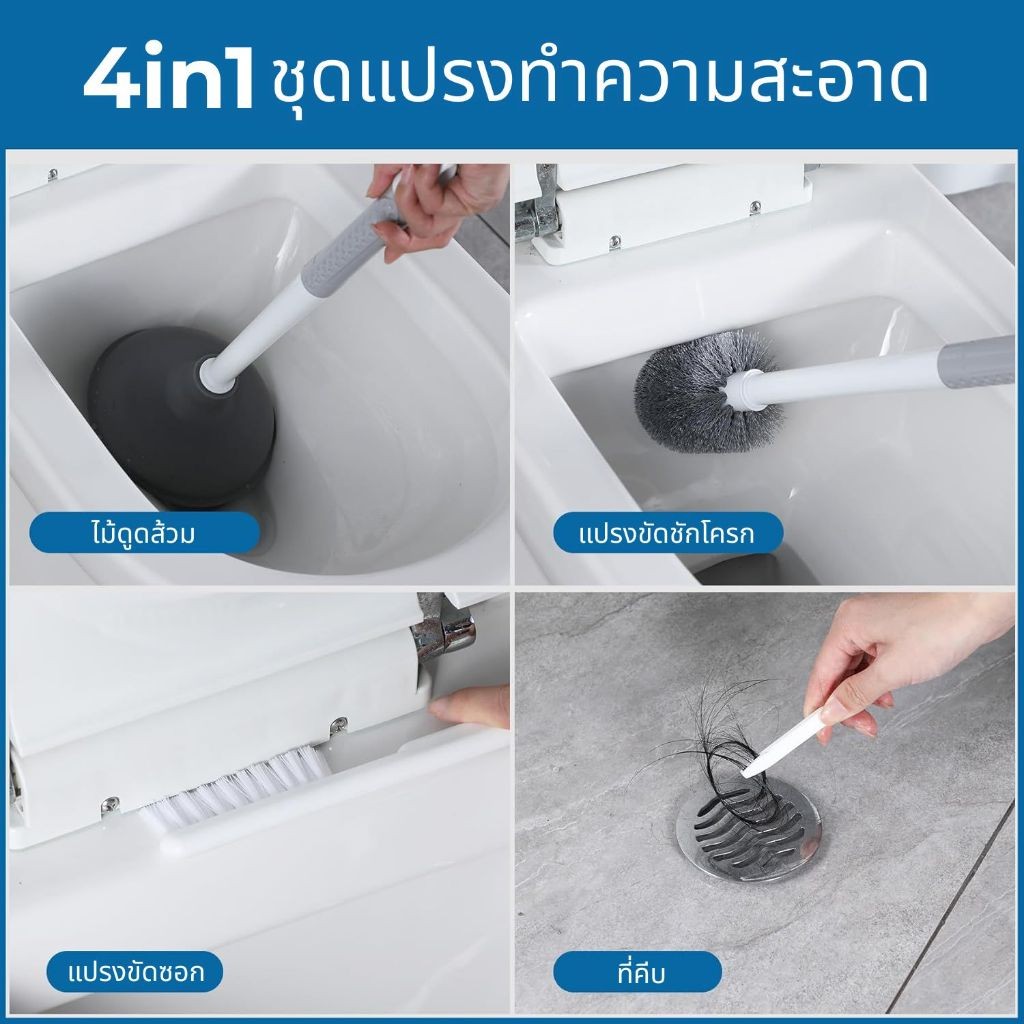 ชุดเซ็ต4in1 แปรงล้างห้องน้ำ แปรงขัดชักโครก Toilet Brush Set แปรงขัดห้องน้ำ ที่ปั้มส้วม ขัดห้องน้ำ fashion